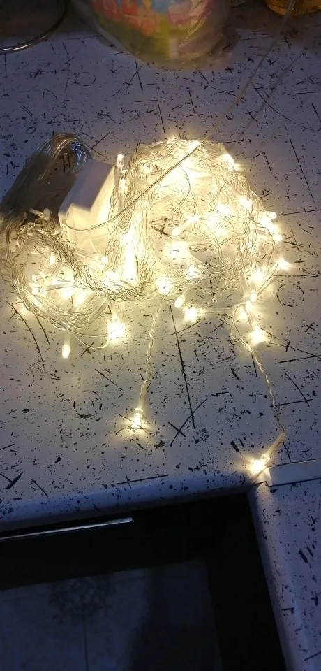 il prodotto è arrivato molto rapidamente molto più velocemente di tanti altri prodotti che ho ordinato. come potete vedere dalle lucine sono molto luminose. la distanza tra le catenelle non è così lontana come c'è scritto in alcune recensioni. il prodotto è ottimo punto Ne ho comprate tre file e le ho collegate tutte insieme. appena le ha viste i miei amici mi hanno chiesto di comprarle anche per loro, ne ordina altri altri tre. veramente complimenti al venditore.