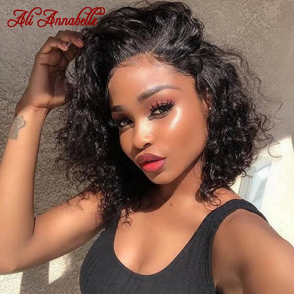 Бразильские Волнистые Короткие парики боб 13x4, парик на сетке спереди, предварительно выщипанные Али Аннабель, парики на сетке спереди из человеческих волос, Короткие парики на сетке