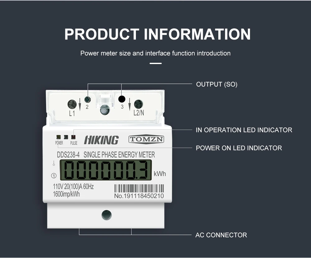 Однофазный ЖК-счетчик энергии, 110 А, 220 В, В, 50-60 Гц, для Америки