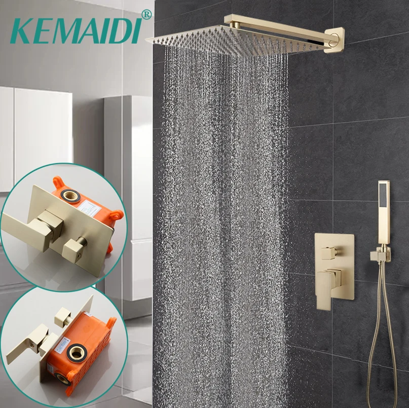 KEMAIDI никель Золотой 12 дюймов набор душевых смесителей насадка д...