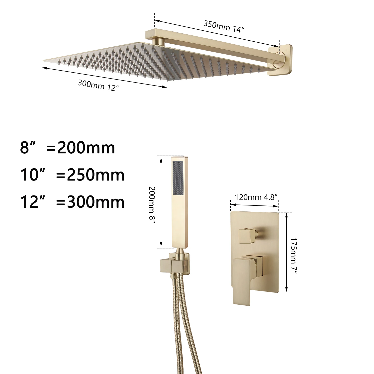 JIENI Роскошный Матовый Золотой 8-дюймовый настенный дождевой набор...