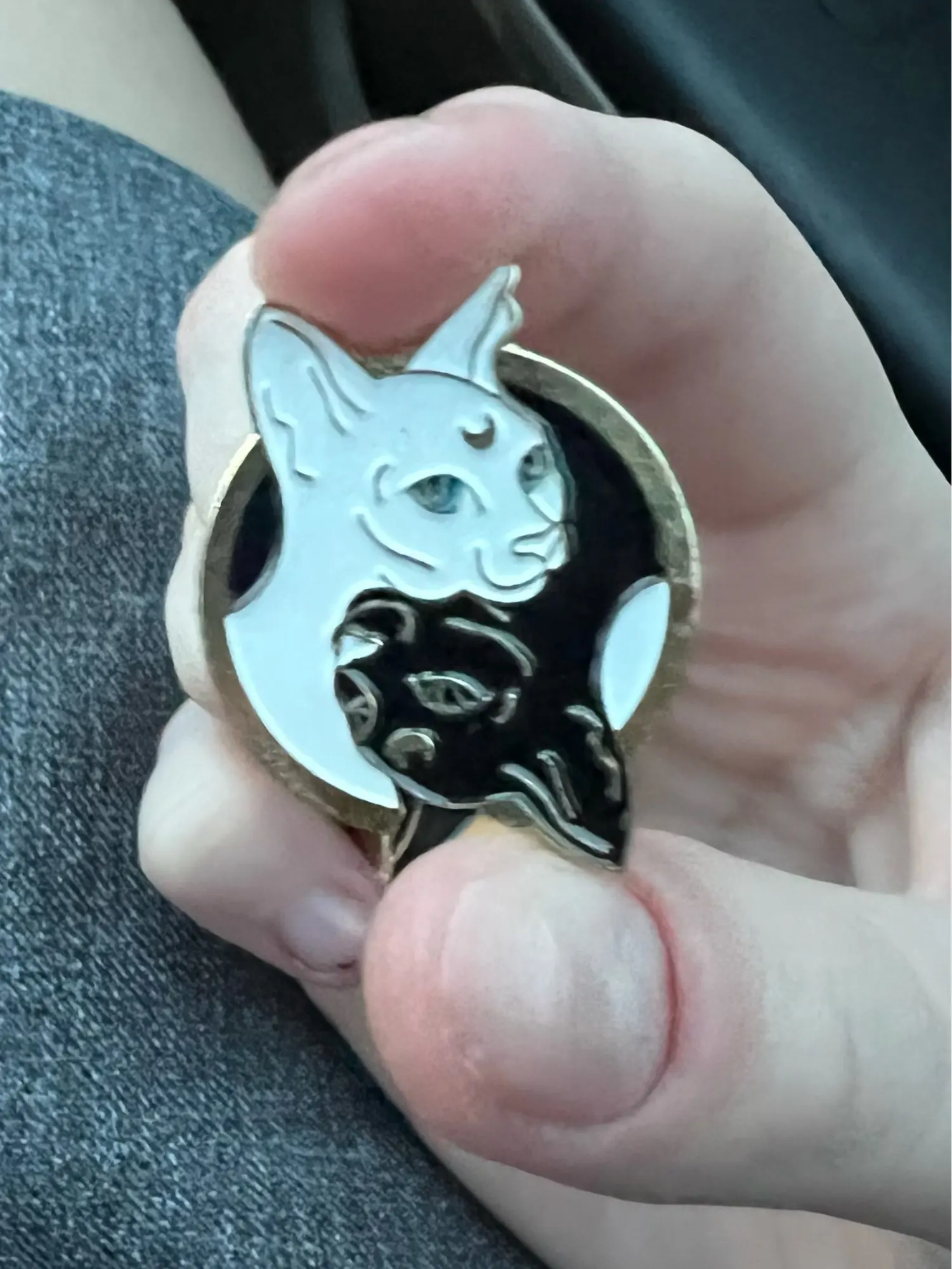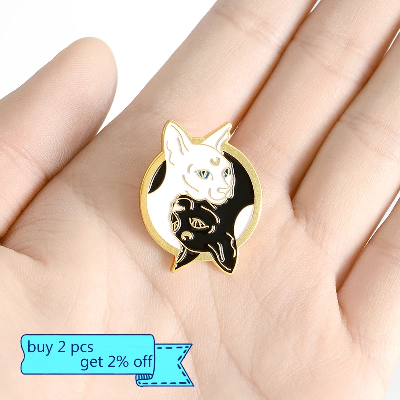 Брошь в виде кошки, сфинкса, черно-белого цвета