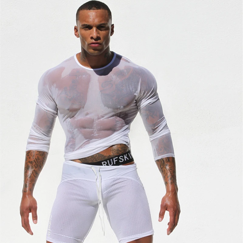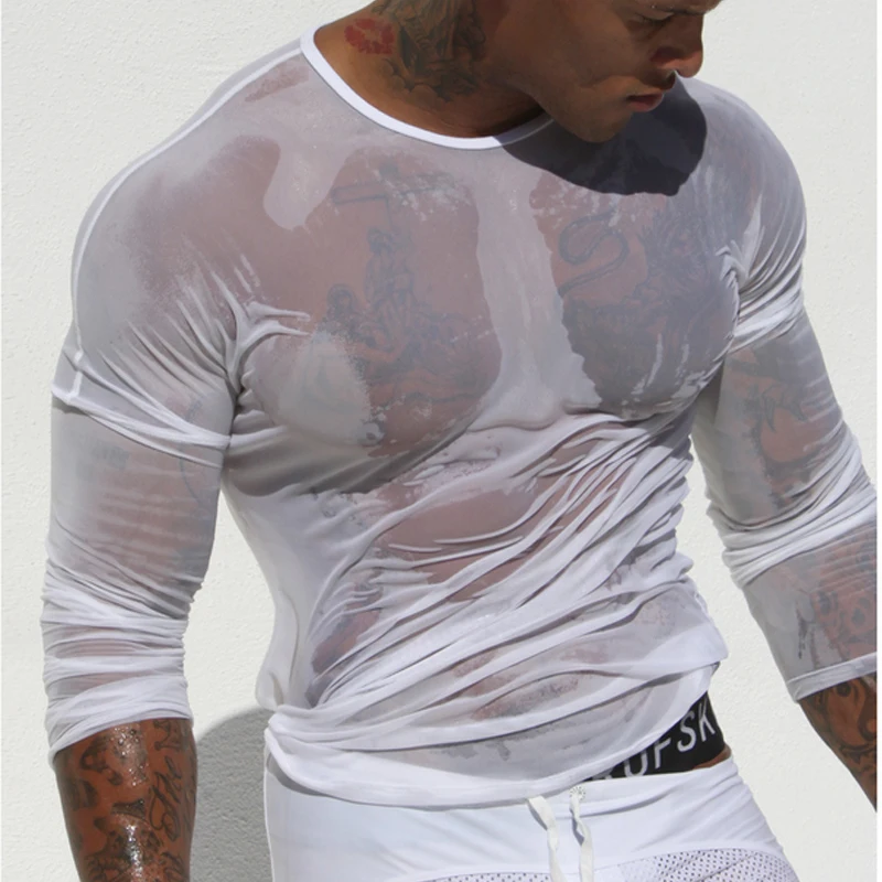 Майка мужская прозрачная, нейлоновая, прозрачная, с длинными рукавами