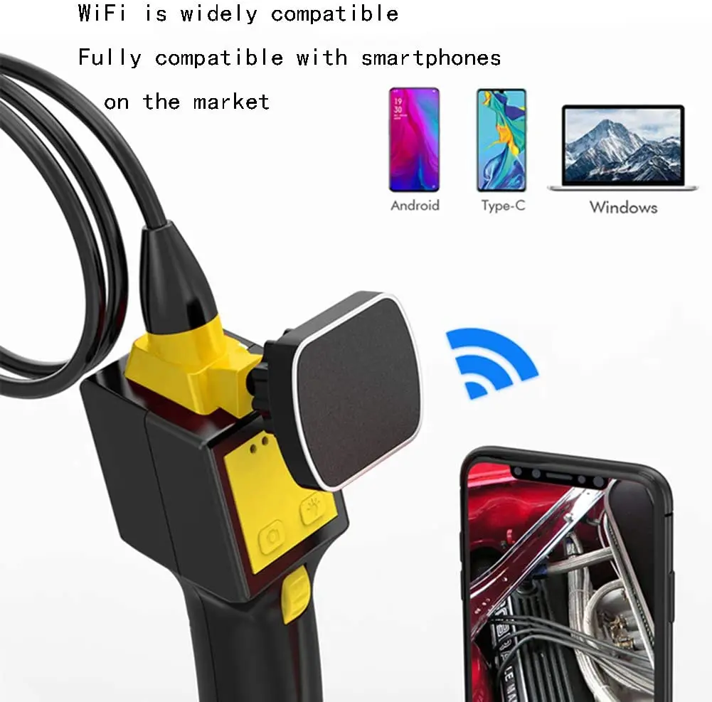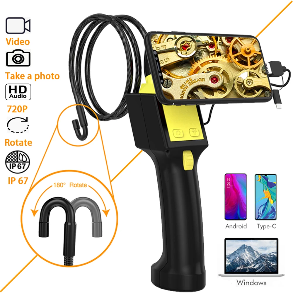 Камера-эндоскоп с поворотом на 360 градусов, гибкий, 8 мм, для проверки дренажных труб двигателя автомобиля, рулевой Бороскоп с экраном для Android OTG