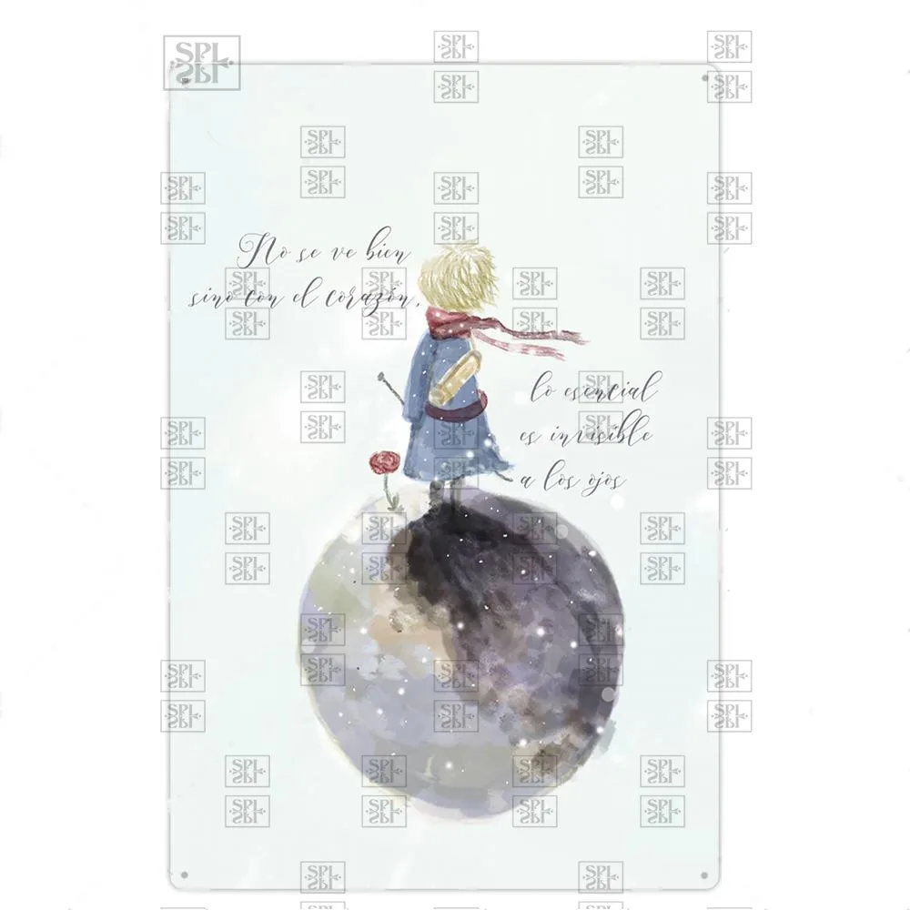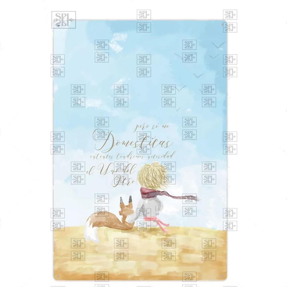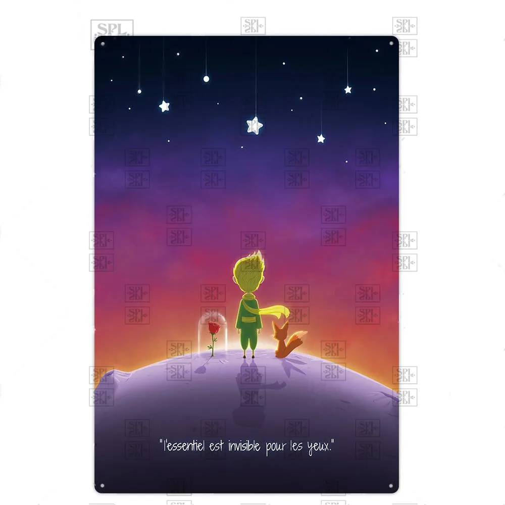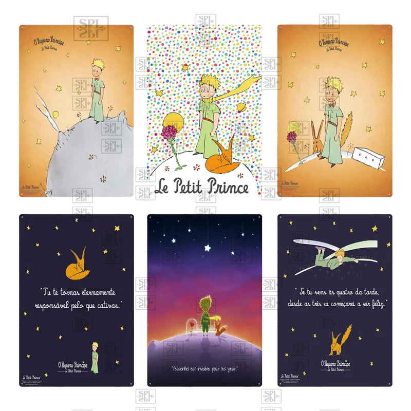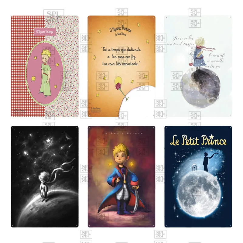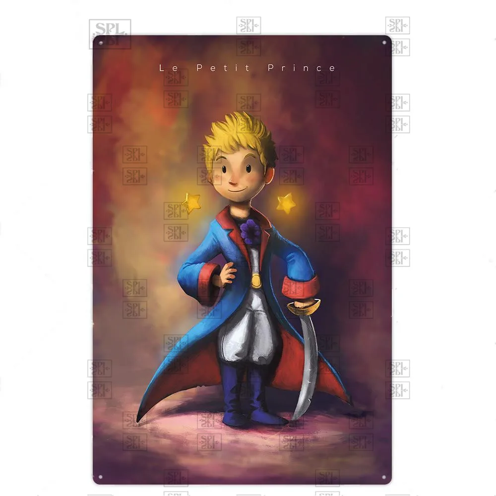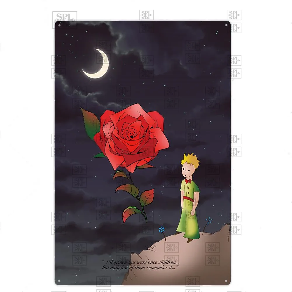 Маленький принц с розами, Красивая карточка, домашняя настенная паста, подвесной постер, ретро, домашнее украшение, металлическая Оловянная доска для детской комнаты, бар