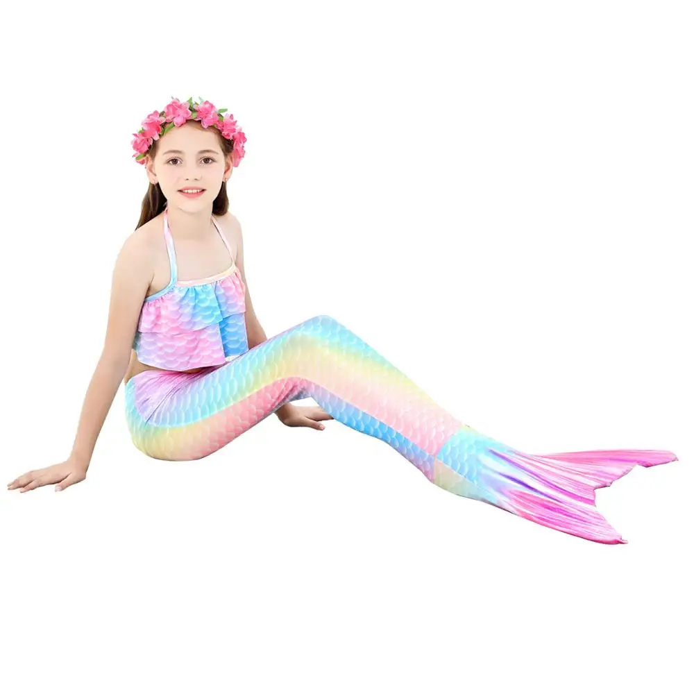 Купальник-бикини для девочек с хвостом русалки, детское летнее плат...
