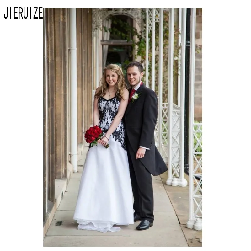Черные кружевные и белые свадебные платья JIERUIZE, свадебные платья со шнуровкой сзади и аппликацией, свадебные платья, свадебное платье