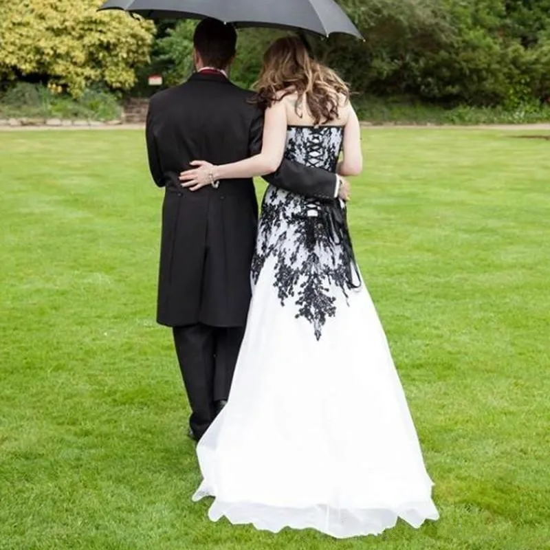 Белое и черное свадебное платье E JUE SHUNG с кружевной аппликацией...