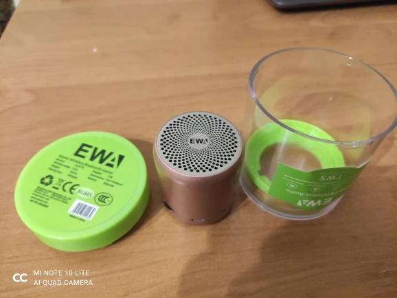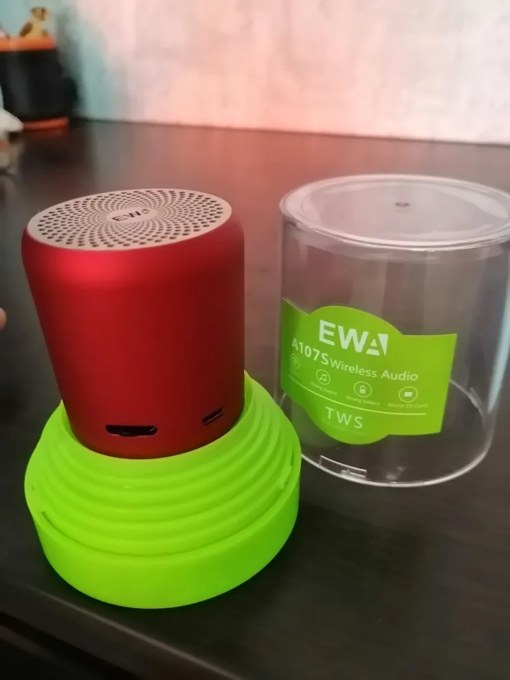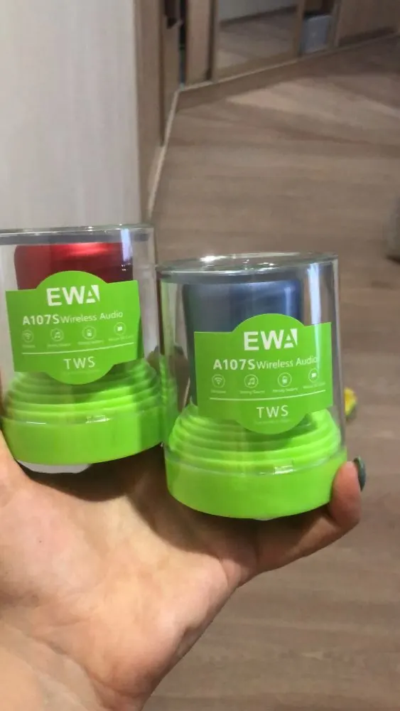 Брали на акции. Так совпало, что купон выпал сразу двум членам семьи и решили взять эти две одинаковые колонки, по тому что они сопрягаются друг с другом и с источником звукового сигнала. Точно таких колонок нет на ютубе в обзорах, нашлось видео с похожей колонкой, судя по обзору небольшая и громкая, наши оказались так же громкие, без хрипов, достаточно чистый звук. Канал Ютуб - ШОПОГОЛИК MAXIM, видео-ПОРТАТИВНЫЙ БЛЮТУЗ ДИНАМИК EWA(видео обзор аналогичной колонки). Дошло за месяц до Минска(Беларусь). Трекномер отслеживался на всём протяжении пути. Упакованы очень надежно, в две разные коробки и поролон(коробки:заводская белая и транспортировочная желтый картон). Продавец общительный. По всем статьям пять звёзд.