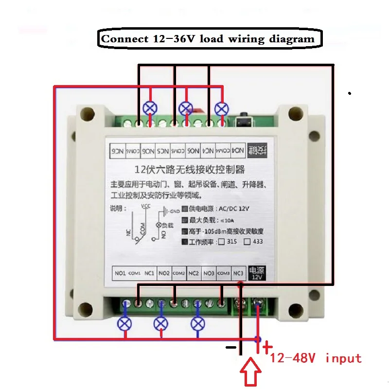 DC 12V 24V 36V 6 CH RF беспроводной переключатель системы дистанционного управления 6CH 10A релейный приемник + 6 кнопочный передатчик