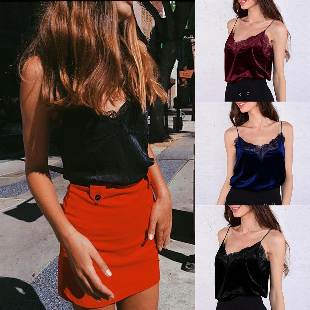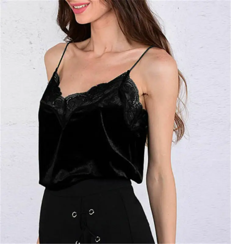 Новинка, женский кружевной жилет, топ без рукавов, бархатная майка на бретелях, изящные летние топы, одежда, сексуальная одежда, топы с v-образным вырезом