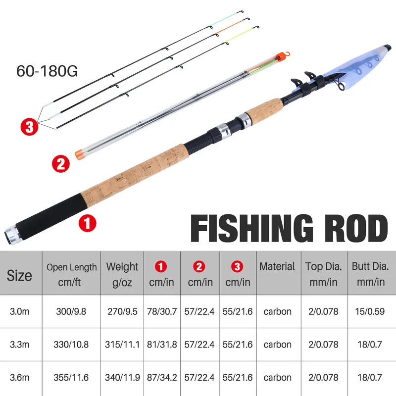 Телескопическая удочка Sougayilang, класс L M H, 3-3,6 м, спиннинг из углеродного волокна, дорожная удочка, снасти для ловли карпа