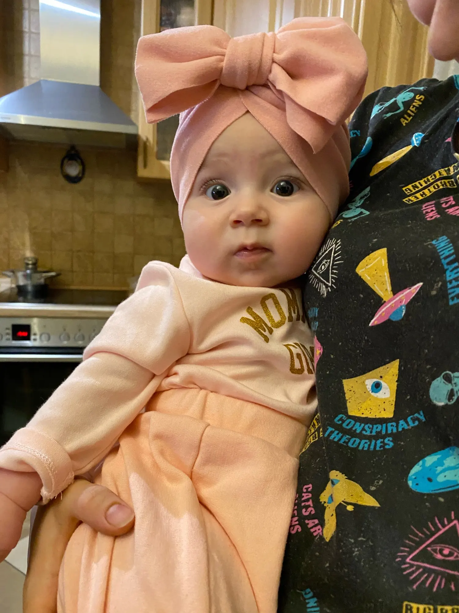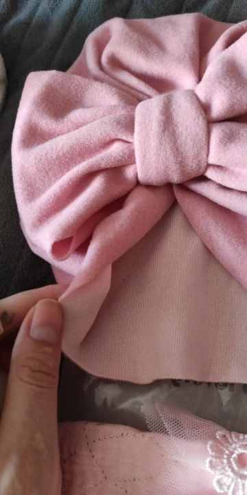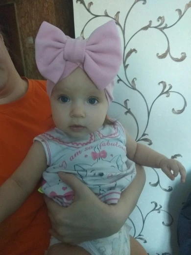 Шапочка очень понравилась , размер подошёл , дочке 6 месяцев , ткань тянется можно и постарше носить . Мягкая , сшита аккуратно , бант аккуратный красивый . Спасибо большое продавцу. Упаковано хорошо. Доставка до Казани с момента заказа 11 дней. Очень быстро пришла! Рекомендую продавца со своей стороны никаких претензий , всё понравилось .