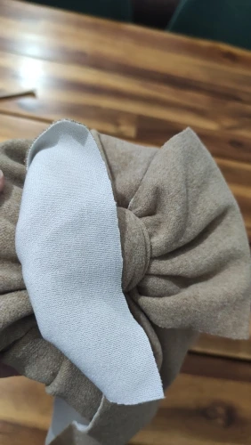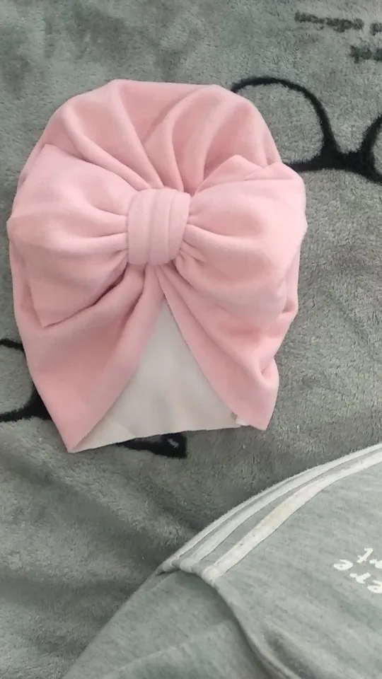 материал шапки плотный, но мягкий и тонкий. можно брать на весну и лето. тюрбан и сам бант аккуратные. на голову 51 см впритык, можно сказать мало. если у ребенка голова более 50 см, то будет мал.