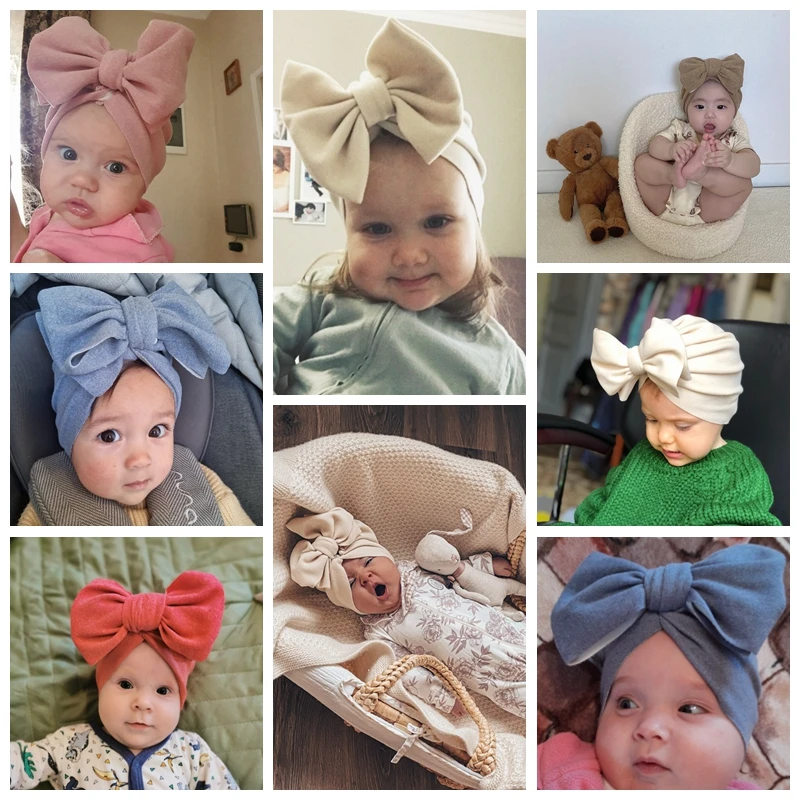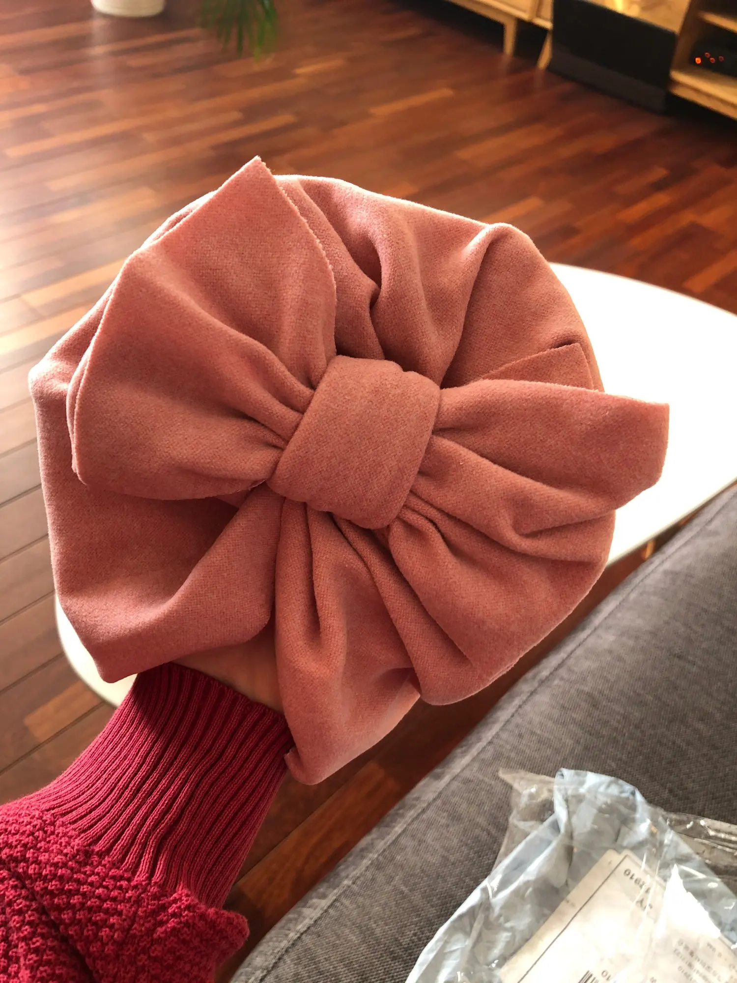 Шапка-тюрбан для девочек, однотонная, с большим бантом