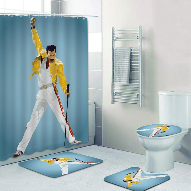 Черный, Freddie, Меркурий, художественная живопись, домашний декор, королева, для ванной, занавеска для ванной, водонепроницаемая, для душа, s, Нескользящие коврики для ванной