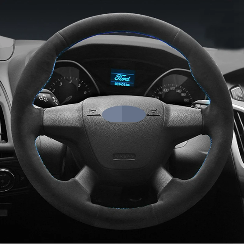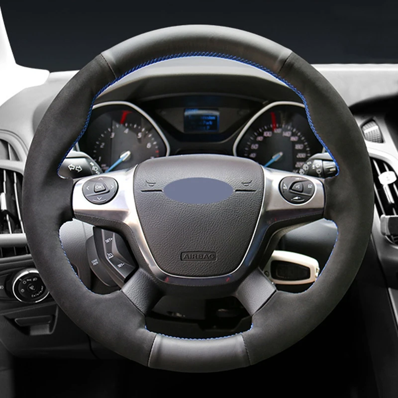 Черного цвета из натуральной кожи и замши, DIY чехол рулевого колеса автомобиля для Ford Focus 3 2012-2014 KUGA Escape 2013-2016 C-MAX 2011-2014