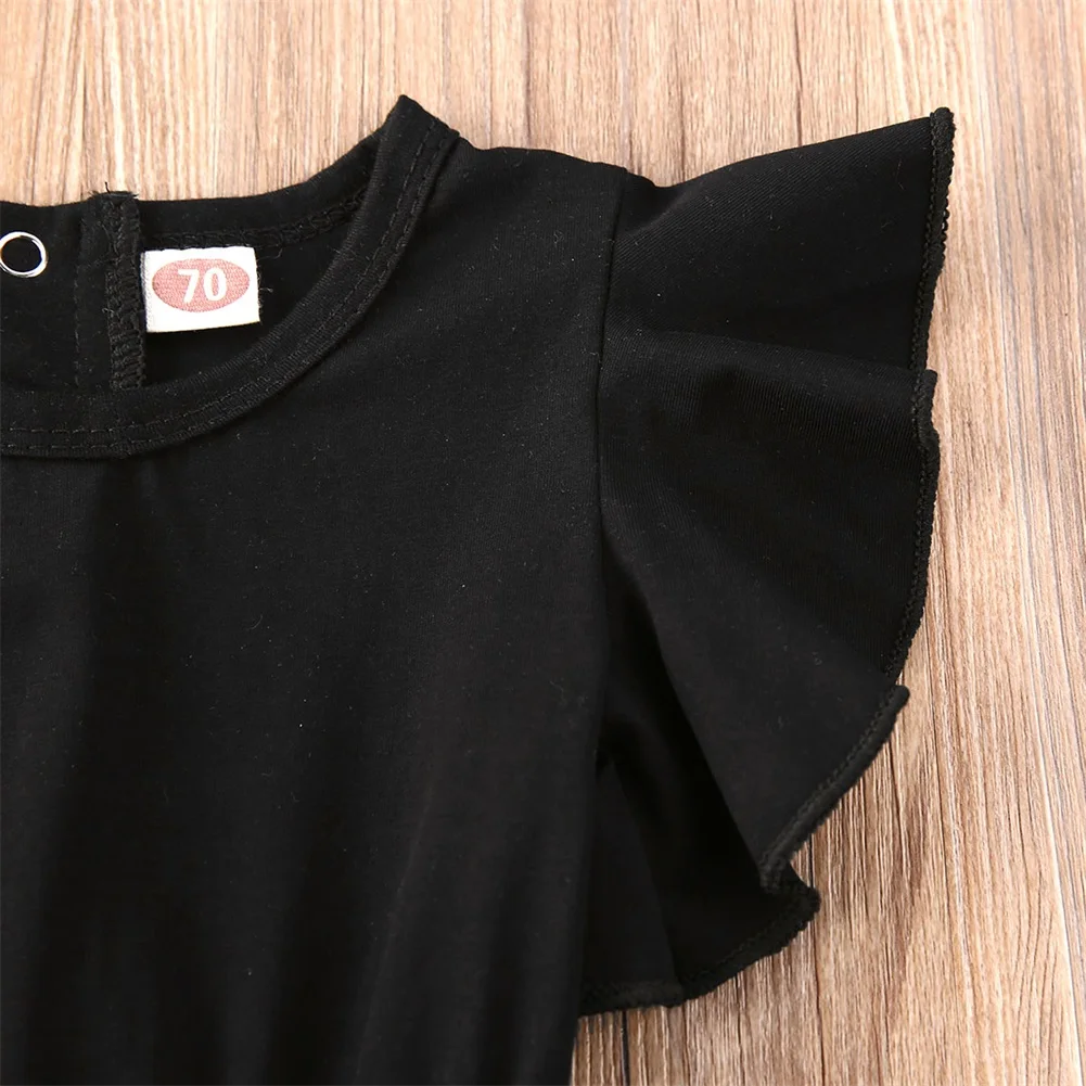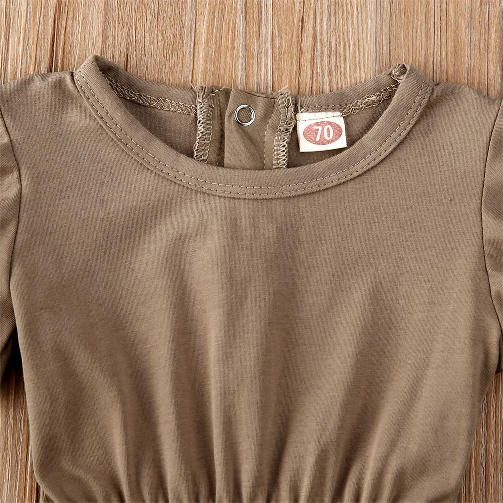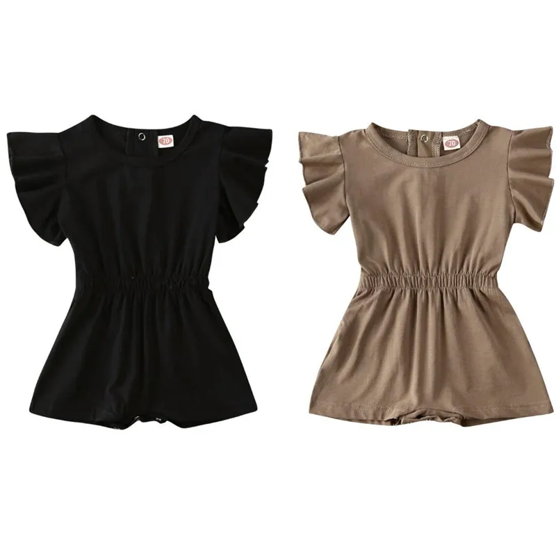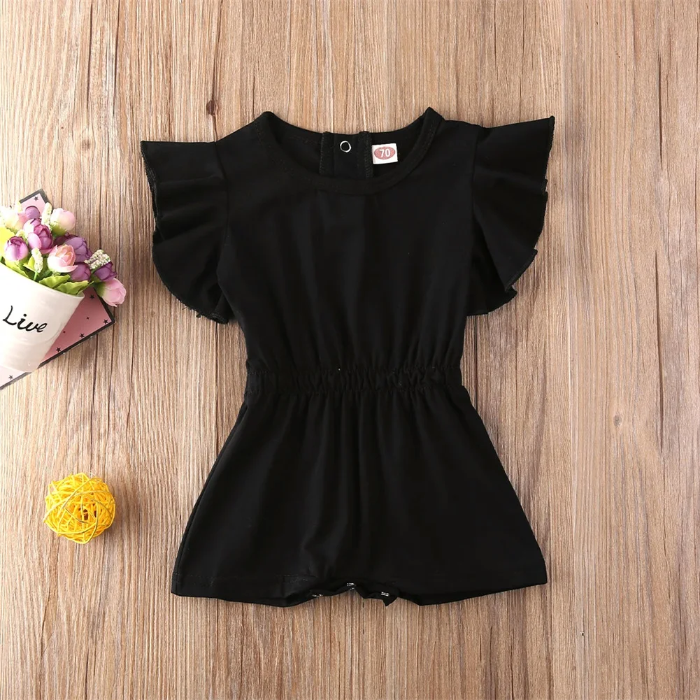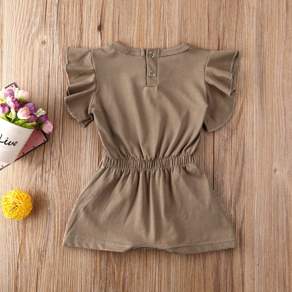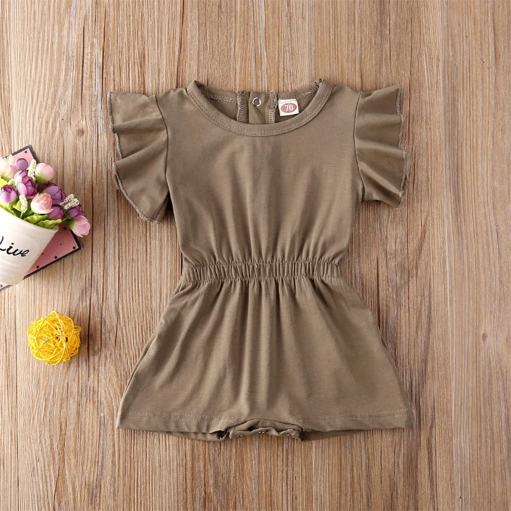 Комбинезон для новорожденных девочек, летний однотонный комбинезон с рукавами с оборками и поясом на резинке, 2020