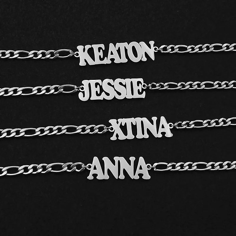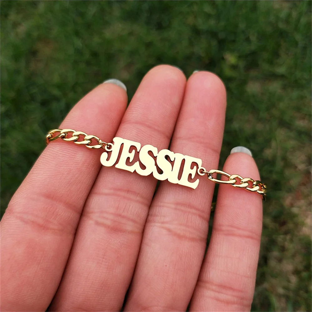 Минимальный браслет с именной табличкой золотая цепочка Фигаро на заказ именной браслет для женщин и мужчин персонализированные ювелирные изделия подарок подружки невесты