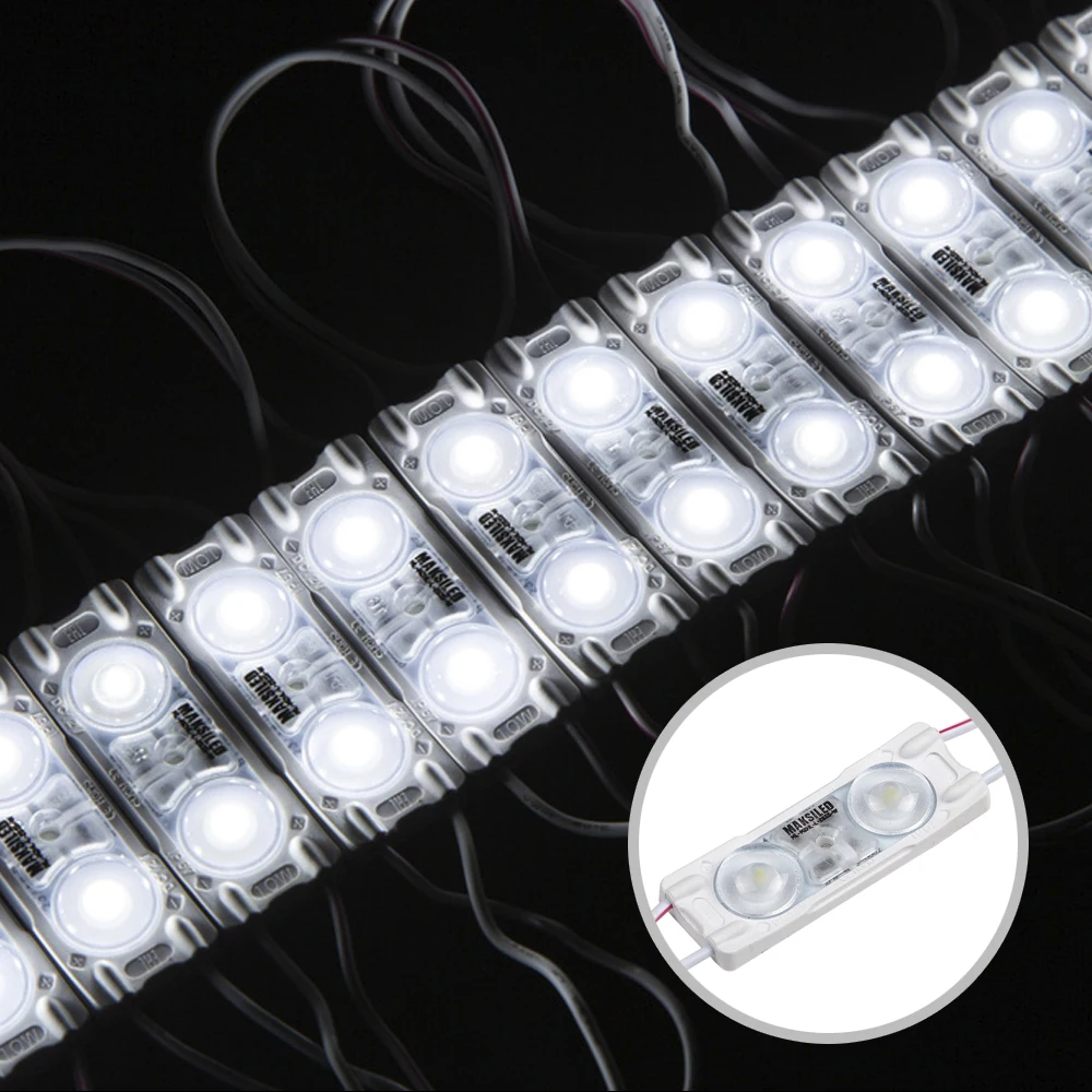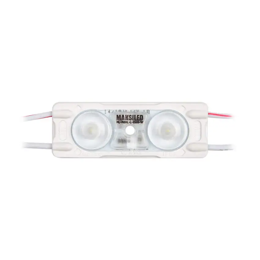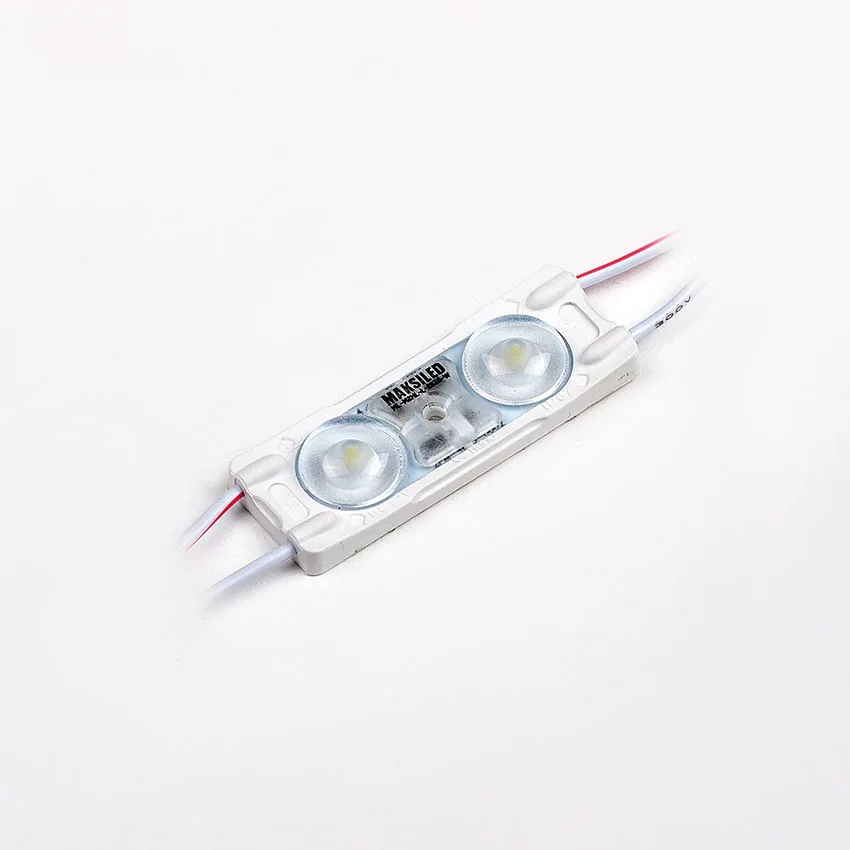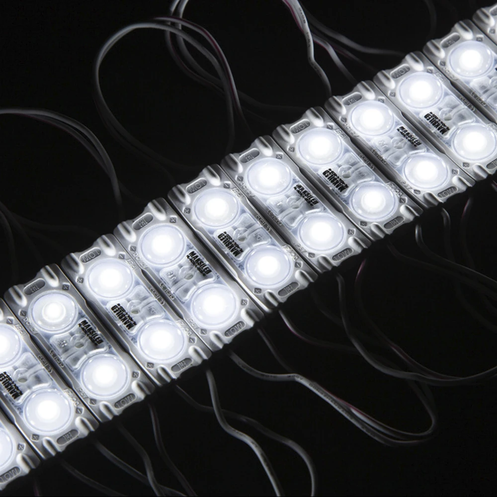 Модуль влагозащищенный с линзами. Оптимальное решение для создания световых коробов и объемных букв глубиной 70–100 мм • Высокоэффективные светодиоды 2835; • Система Constant Current (одинаковая засветка модулей в стандартной цепи); • Уникальный дизайн линзы, обеспечивающий плотную и равномерную засветку на поверхности; • Алюминиевая плата для лучшего теплоотвода; • Корпус из ABS пластика с добавлением файбера, повышающего устойчивость корпуса к перепадам температур и предотвращающего его разрушение.