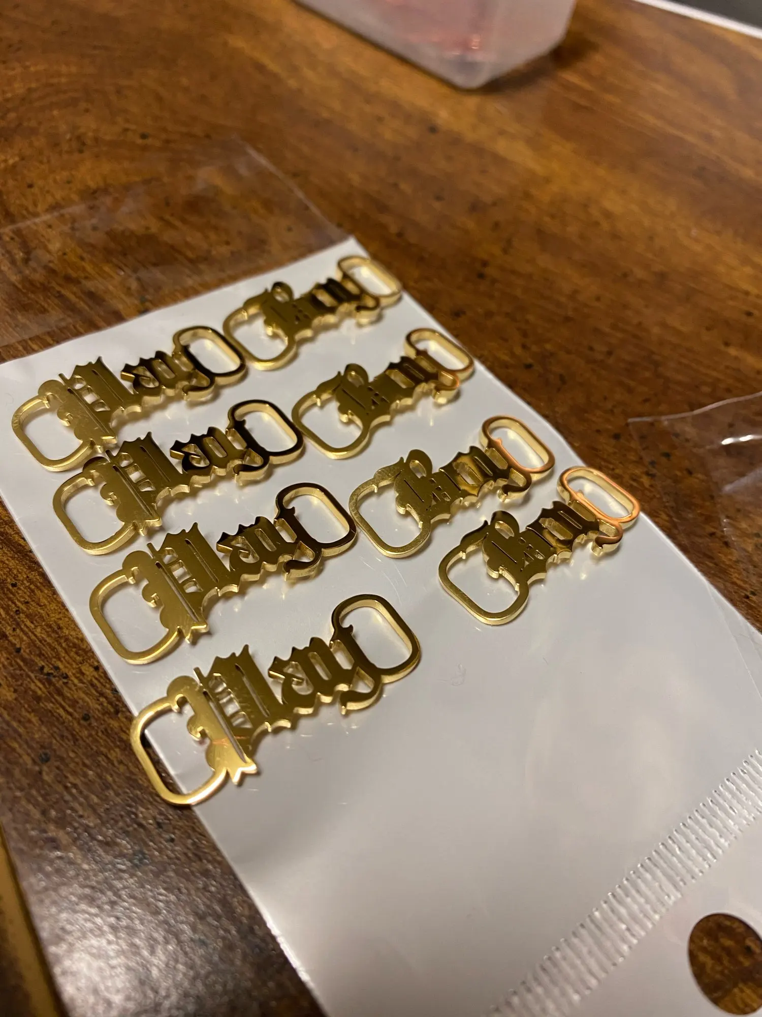 В примечаниях я получил 2 вещи по запросу продавца. Товары высокого качества и блестят. Только один предмет из трех, был не в соответствии с моей инструкцией-я хотел обычный шрифт, а не жирный шрифт. Шрифт по-прежнему выглядел смелым для этого элемента, но продавец вернул мне за этот товар. Два других изделия были удивительно выполнены хорошо! Я бы порекомендовал обслуживание!