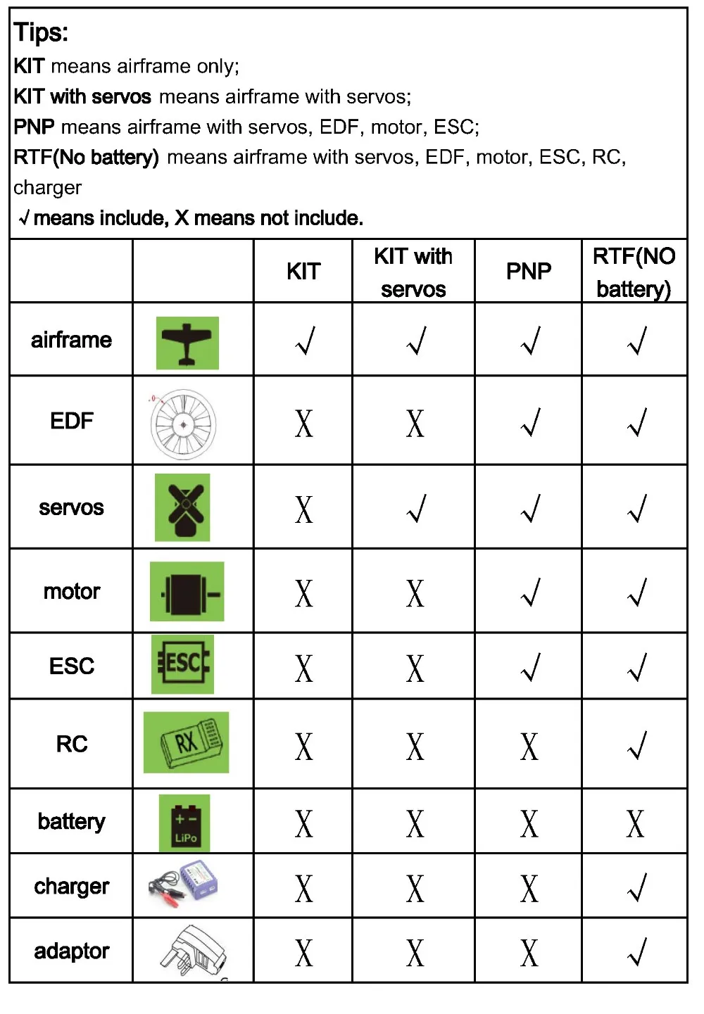 Комплект означает airframe с комплектами посадочных передач retract, no EDF, No electronics.