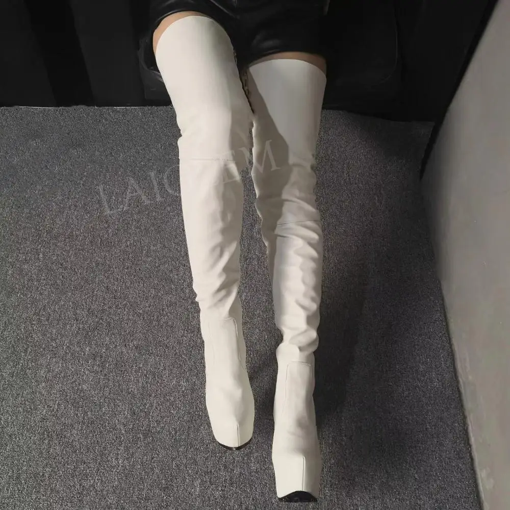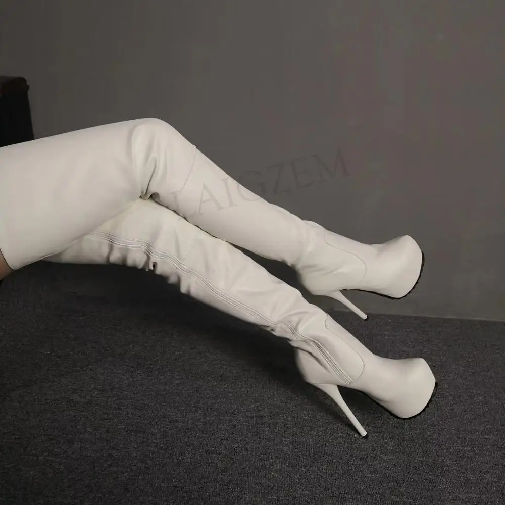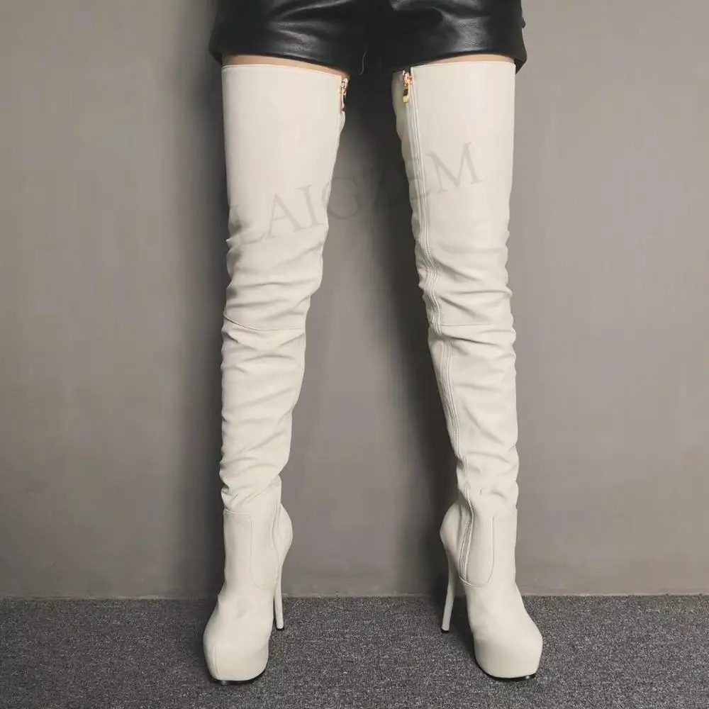 Женские ботфорты на платформе BERZIMER, бежевые Сапоги выше колена на шпильке, большие размеры 39, 43, 47, 52, высокие женские сапоги