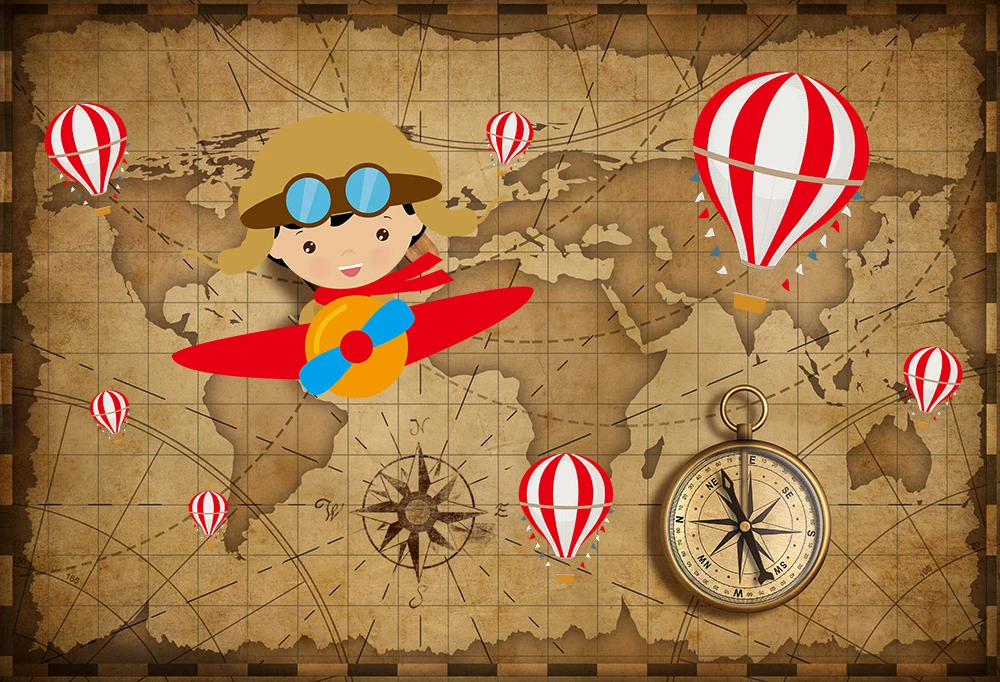 Фон для фотосъемки детей на 1-й день рождения с воздушным шаром Миш...
