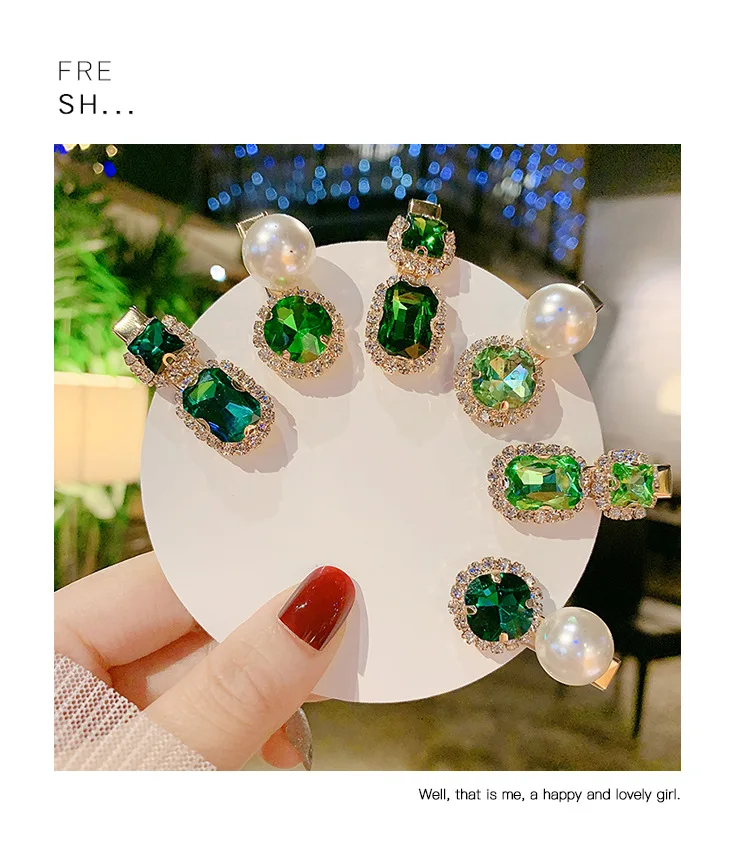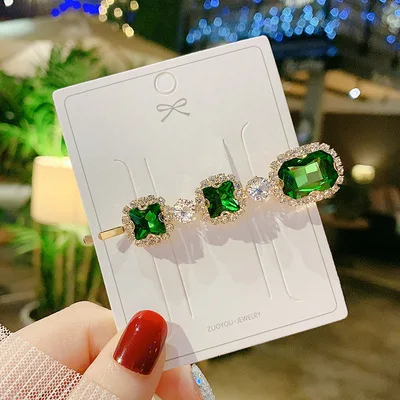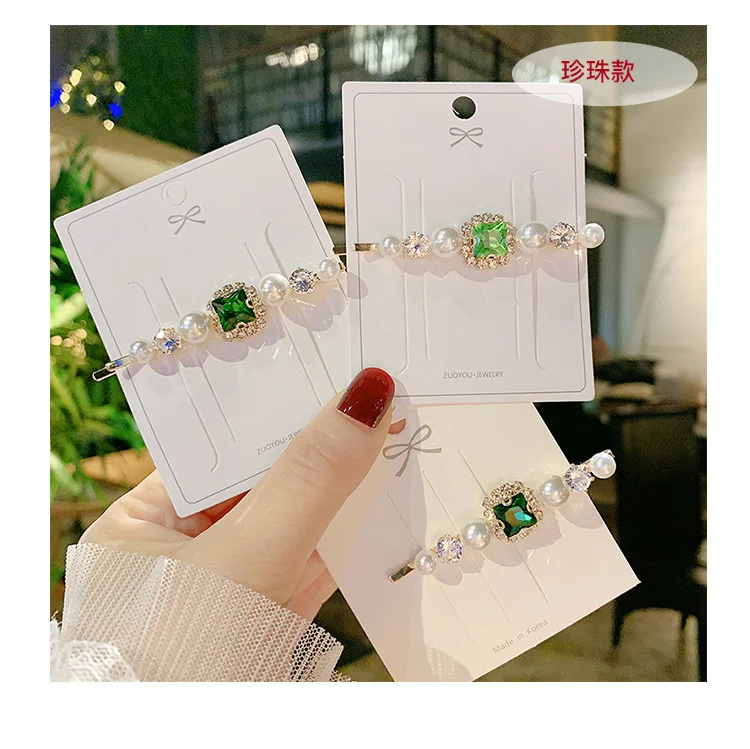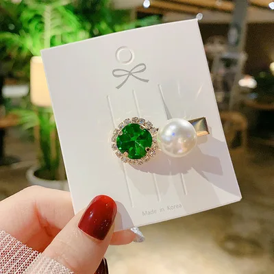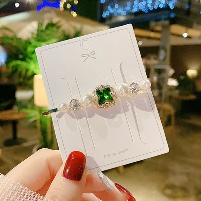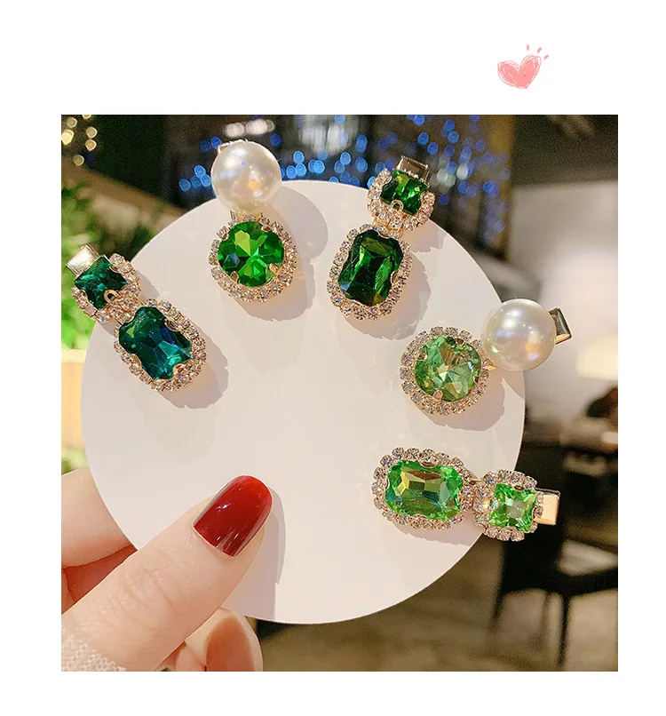 Заколки для волос женские с бантом и жемчугом, супер блестящие шпильки для волос с зелеными кристаллами и жемчужинами, аксессуары для волос, стразы