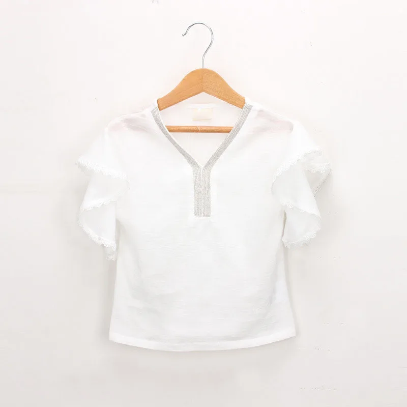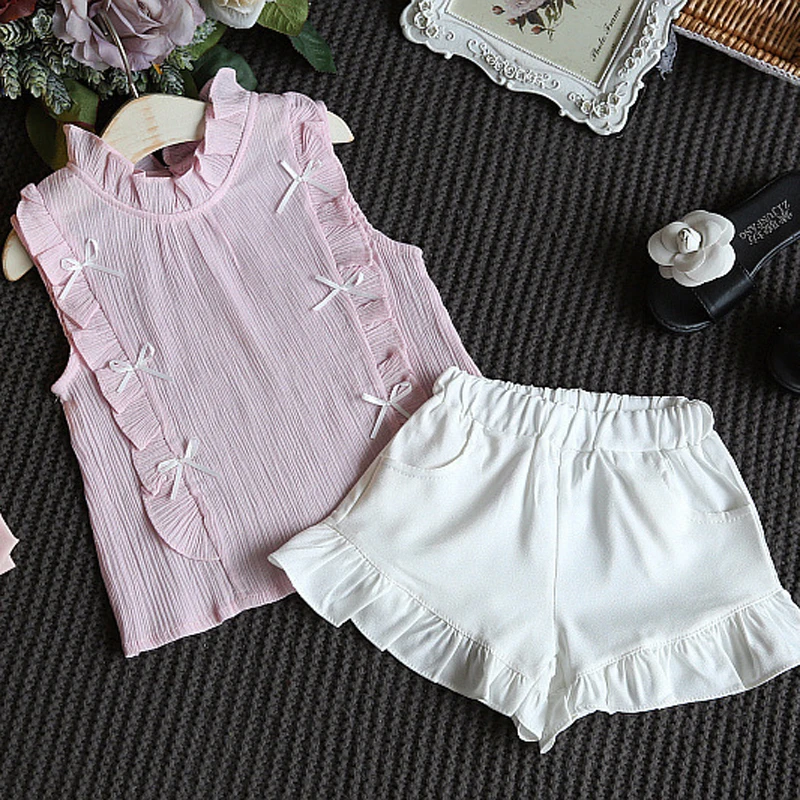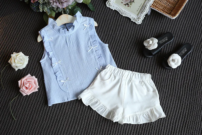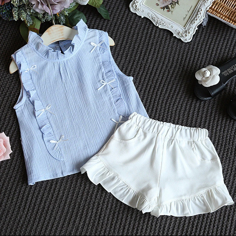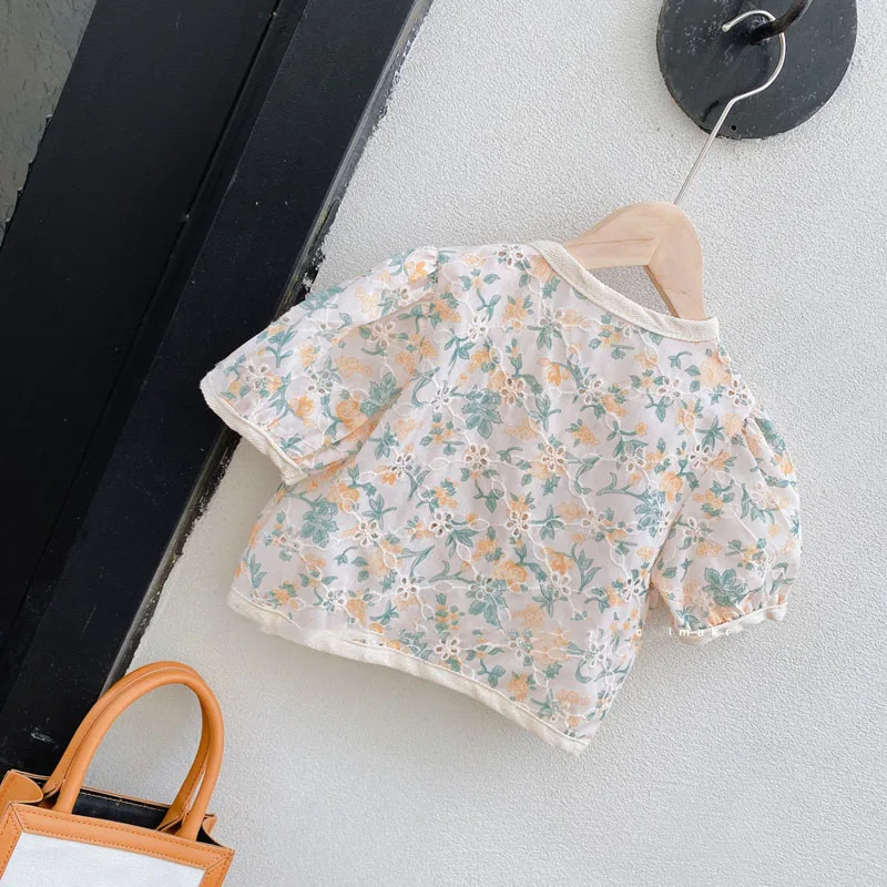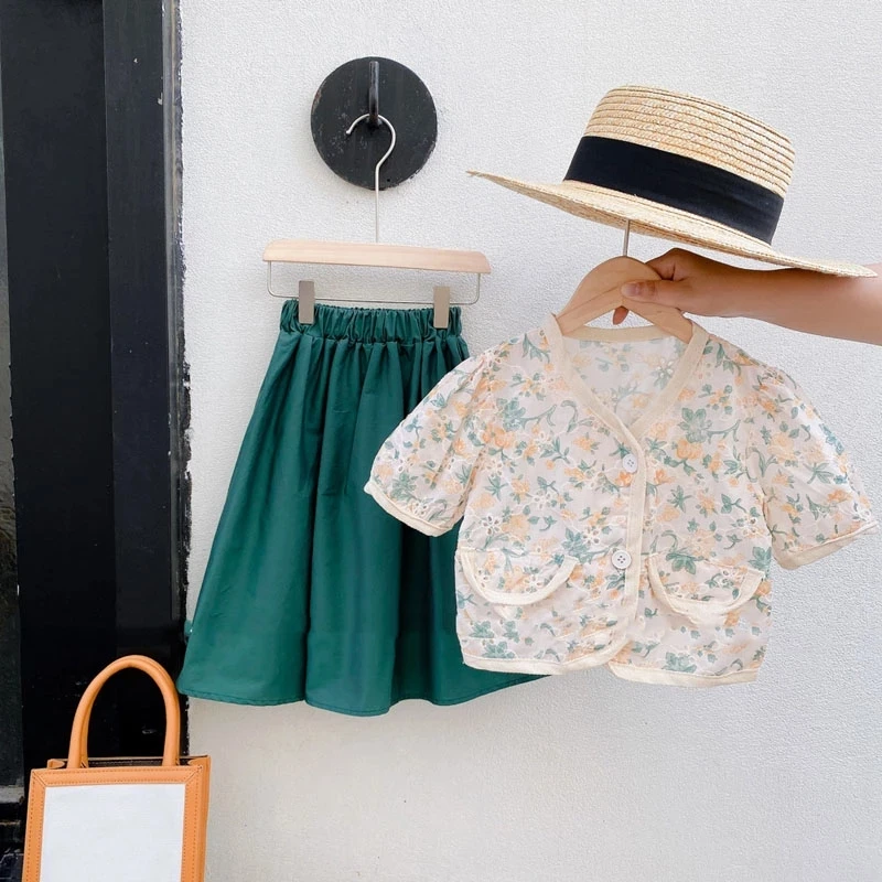 Комплект летней одежды для девочек, джинсовый топ с вышитыми цветами и лацканами + юбка из сетчатой пряжи, костюм из 2 предметов, детская одежда принцессы, 2021