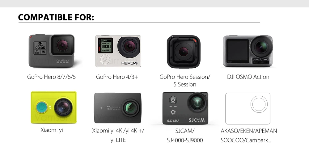 Материал: ПОМ/ПВХ пластик/полиэфирная тканьЦвет: черныйРазмер (приблизительно): 22,7*11,7 см, 12*8 смПрименимая Модель: для GoPro/Yi/SJCAM и др.