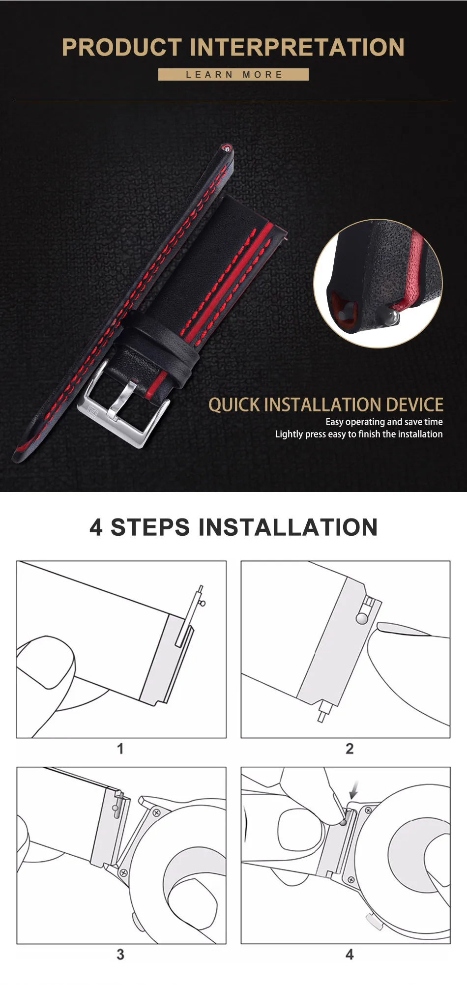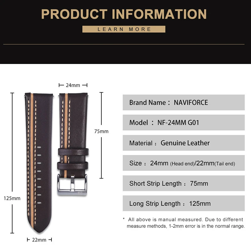 NAVIFORCE Genuine Leather Strap Watchbands Men 24mm Watch Wrist Strap Brown Black Red Blue Casual Bracelet Belt 2020