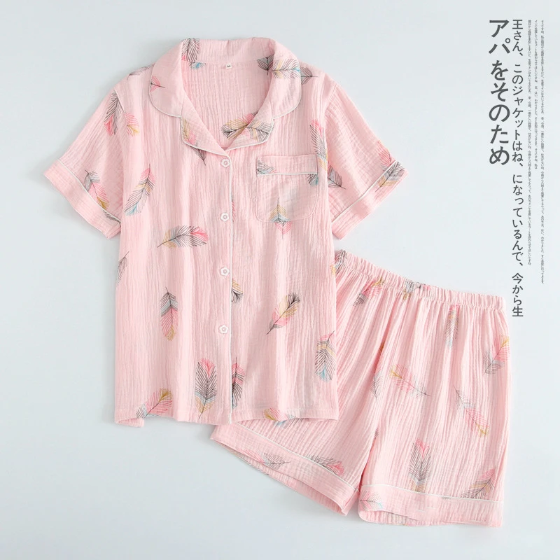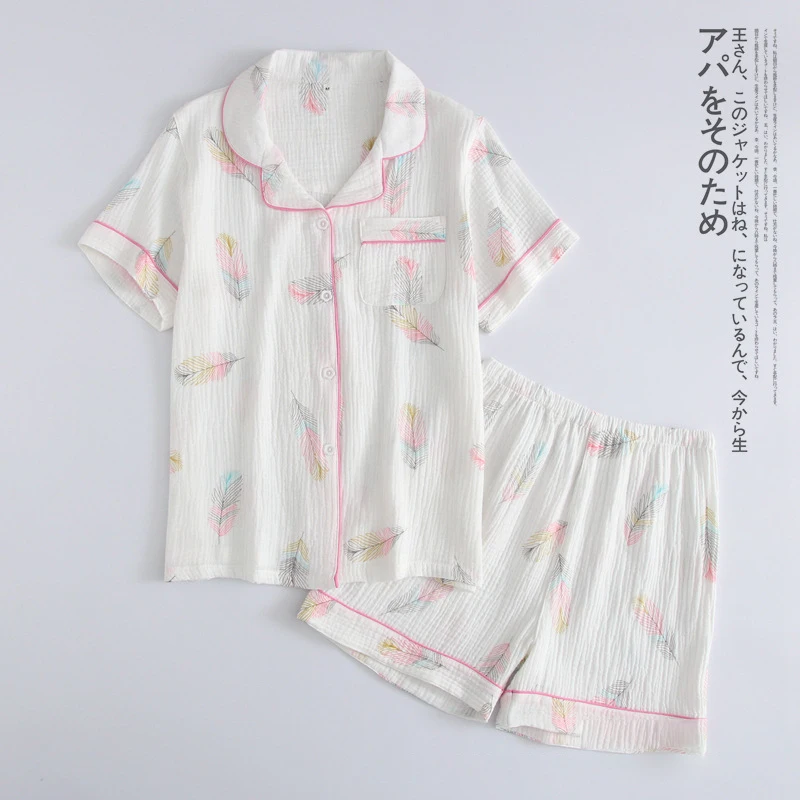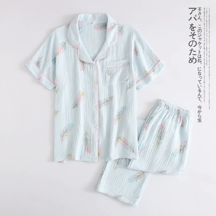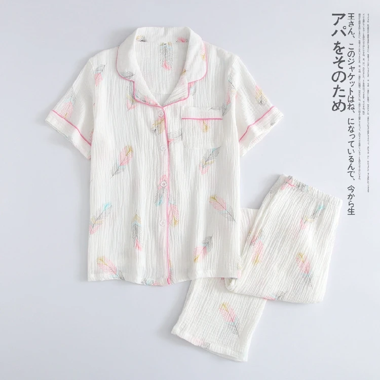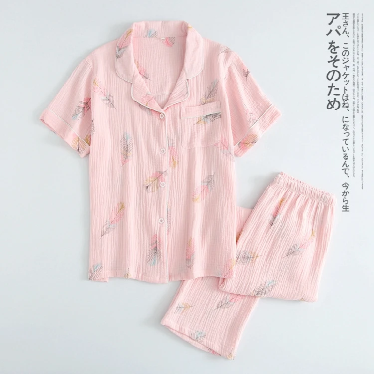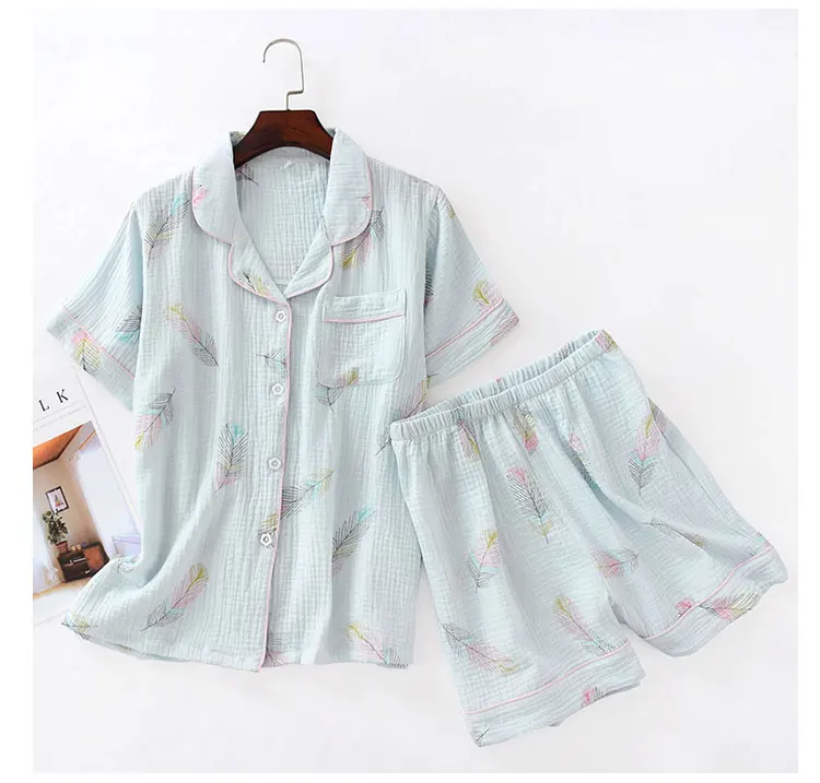 2022 женские летние новые шорты с коротким рукавом пижамы 100% хлопок креп домашний костюм простой и красивый удобный комплект
