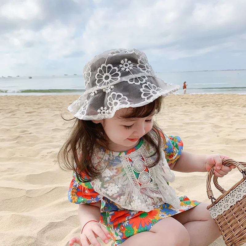 2020 летние новые кружевные милые шляпы с цветочным рисунком для маленьких девочек, пляжные кепки для отдыха для детей ясельного возраста, детская одежда, аксессуары для украшения улицы