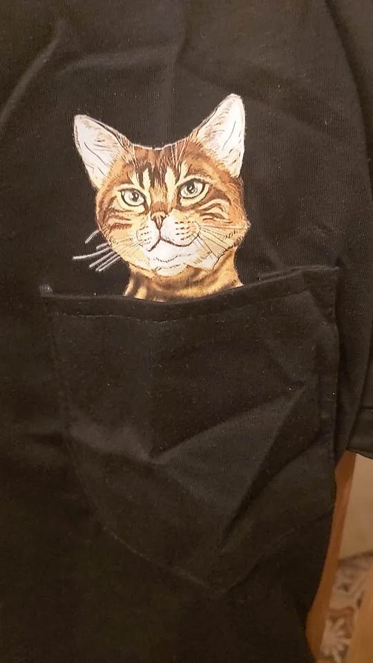 обычная чёрная футболка (вроде х/б) с прикольнвм принтом, ранее заказывала с мопсом, все ок)