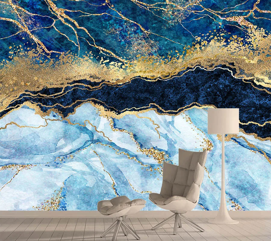 Настенные 3d фрески с текстурой под голубой мрамор, настенные бумаж...