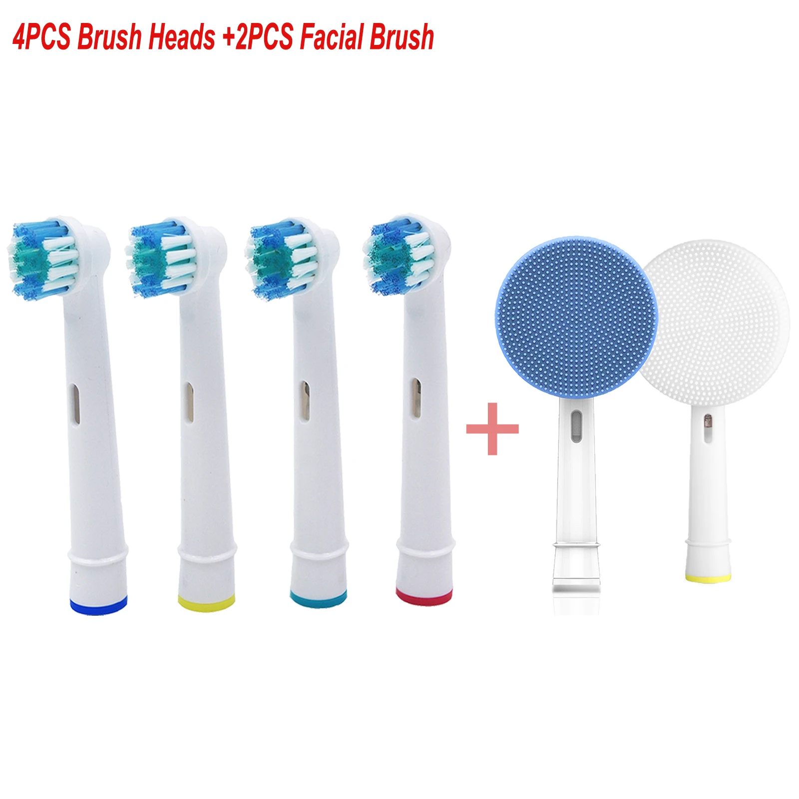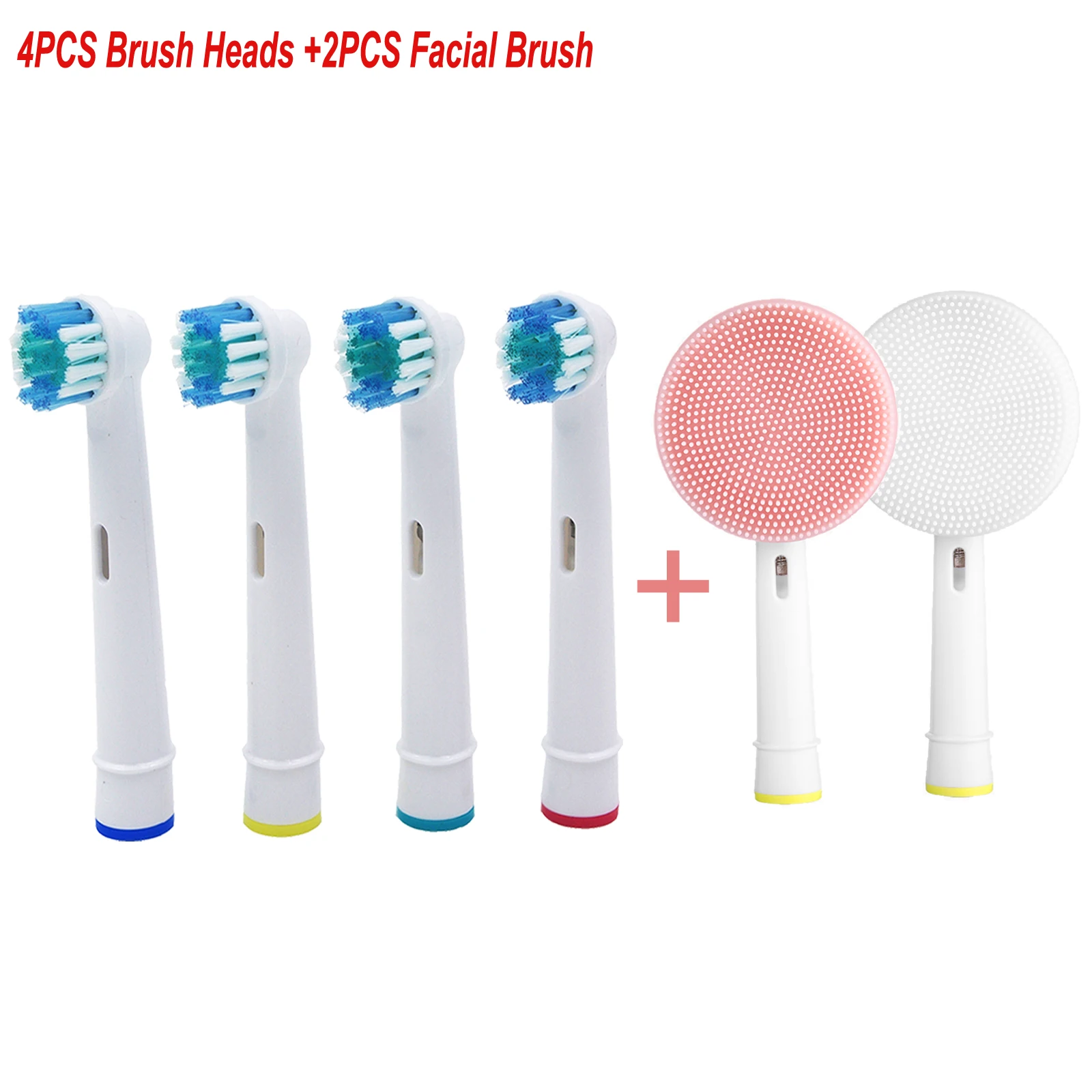 2x Очищающая щетка для лица насадки для душа и 4x сменные насадки для зубной щетки Oral-B Электрический Зубная щётка подходит 3D ExcelVitality Precision Clean