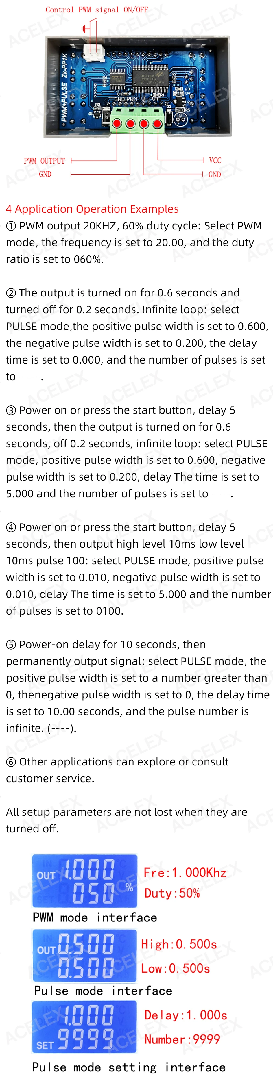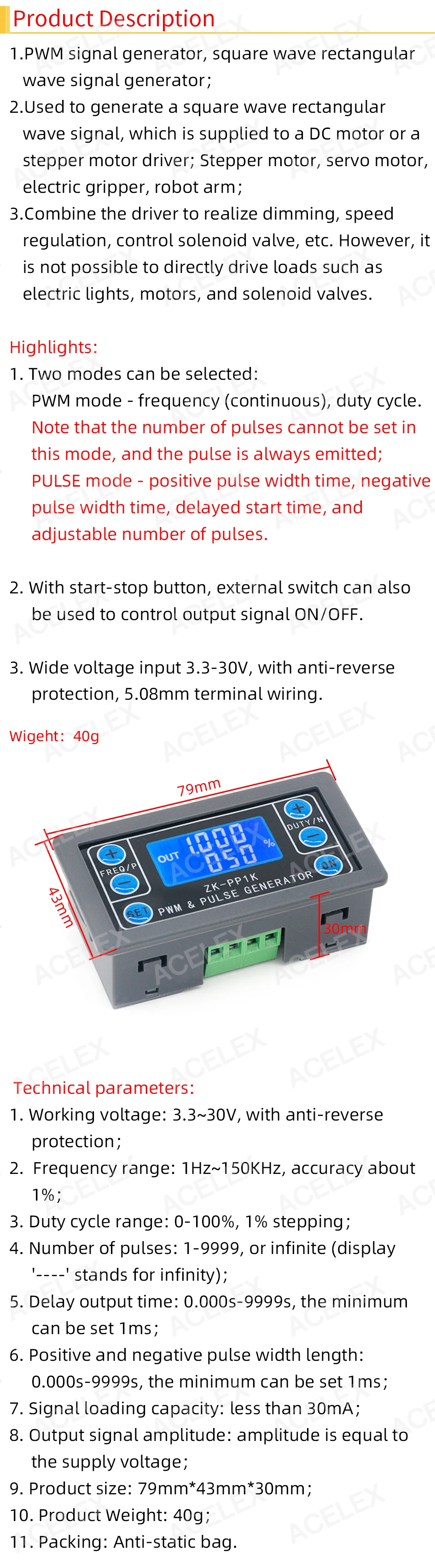 3. Диапазон рабочего цикла: 0-100%, 1% шаг;