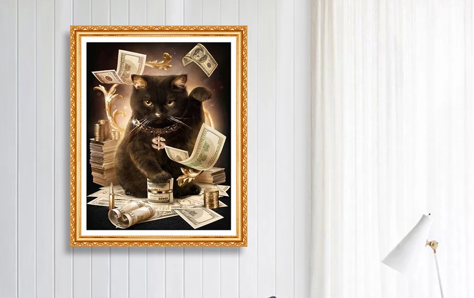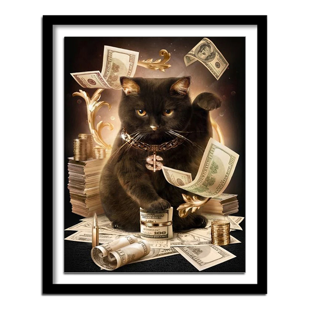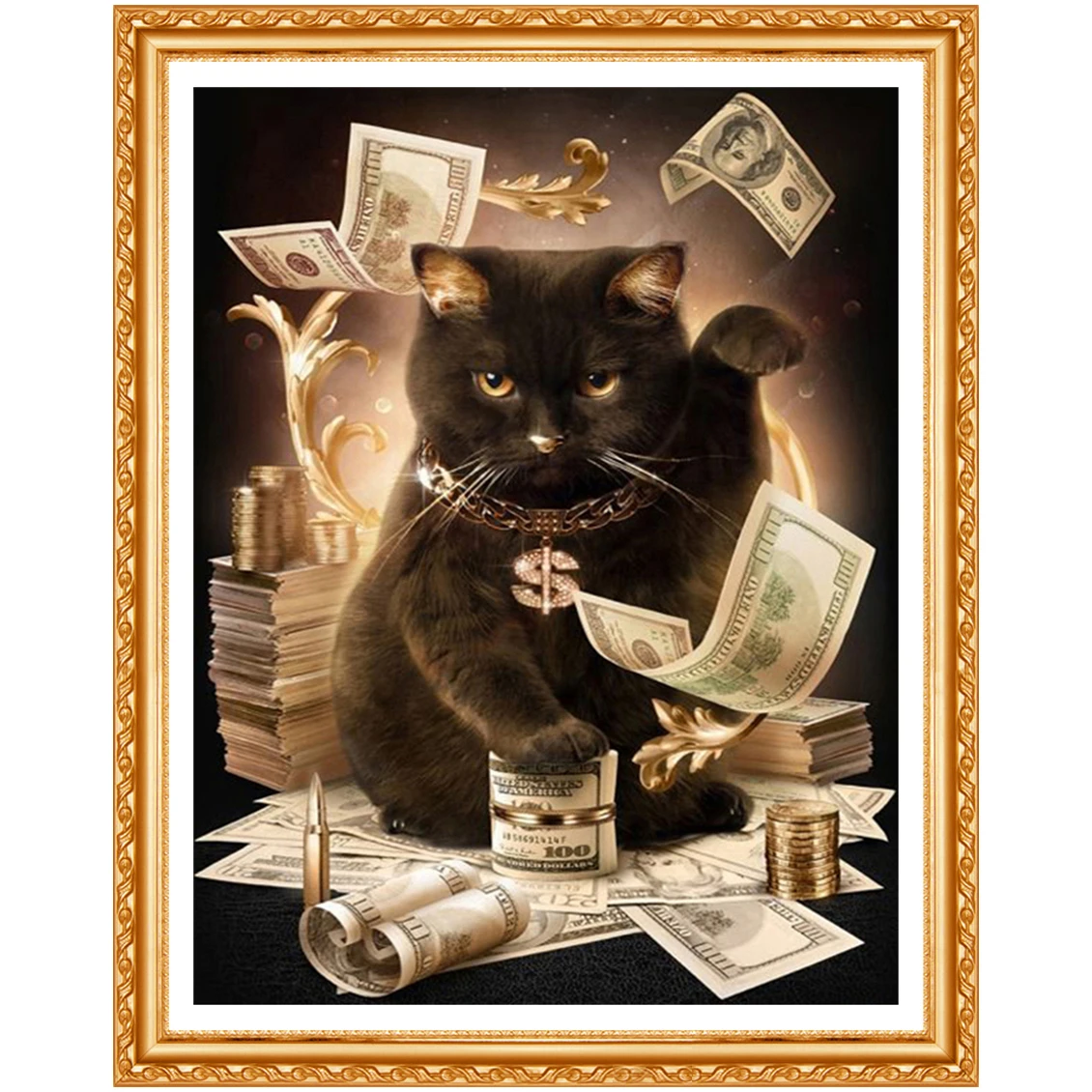 Алмазная вышивка "Кот" с денежным узором "сделай сам" 5D алмазная живопись рукоделие вышивка крестиком полная дрель