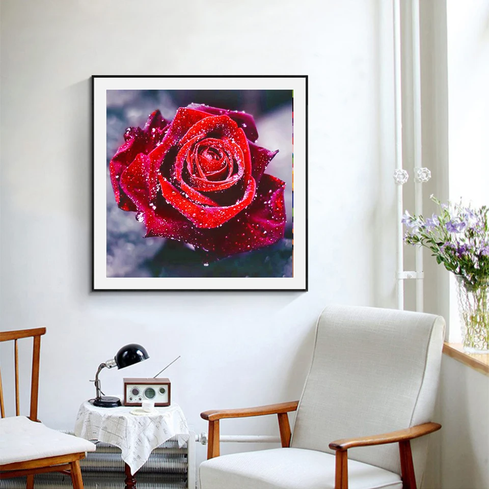 Стразы новые рождественские подарки любовь красная Роза круглая Алмазная Картина Вышивка Сделай Сам домашний декор горный хрусталь картина паста мозаика