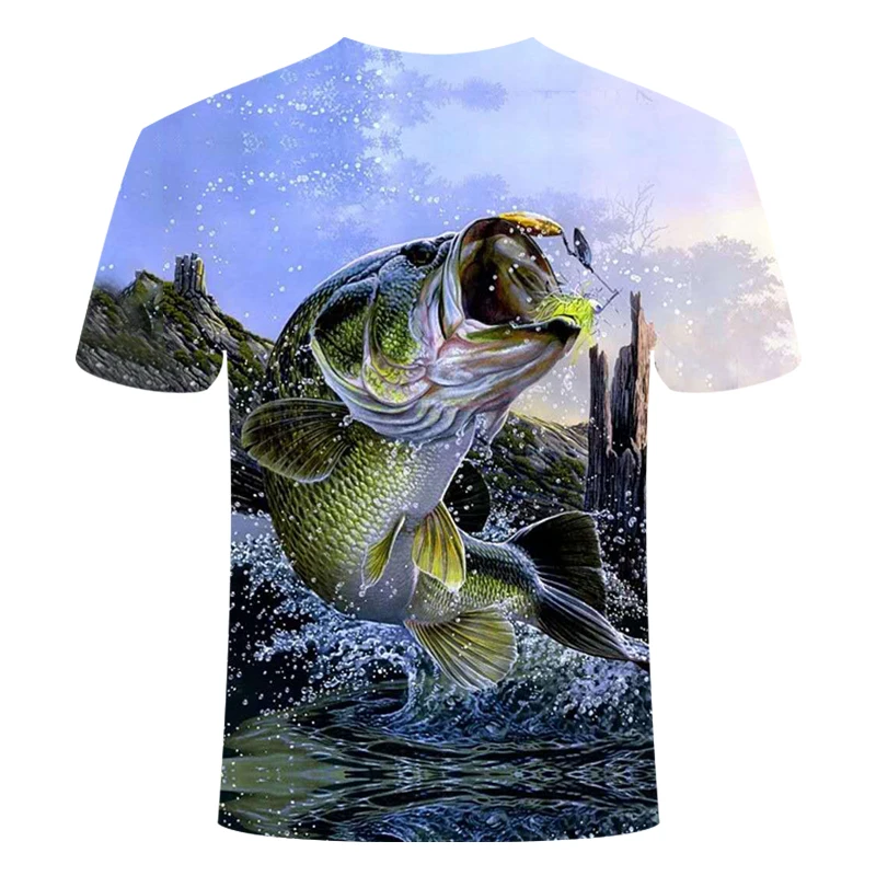 Футболка с 3D-принтом Рыбацкая рыбка, летняя футболка с коротким ру...