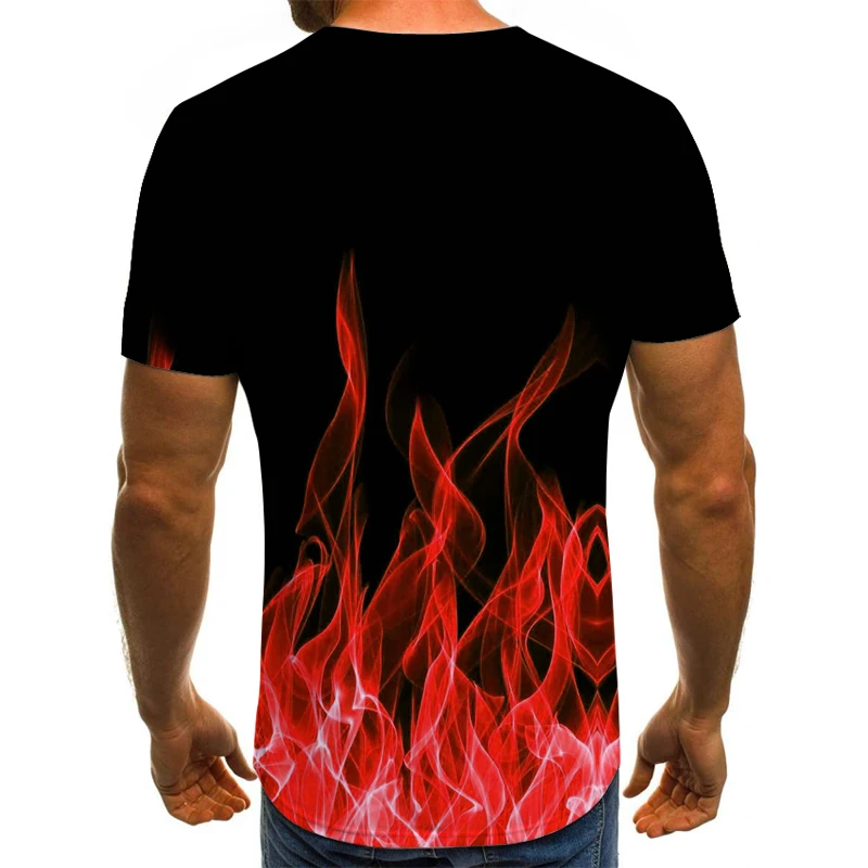Футболка мужская с 3d рисунком пламени, повседневная тенниска в стиле хип-хоп, уличная одежда с коротким рукавом, черная, лето