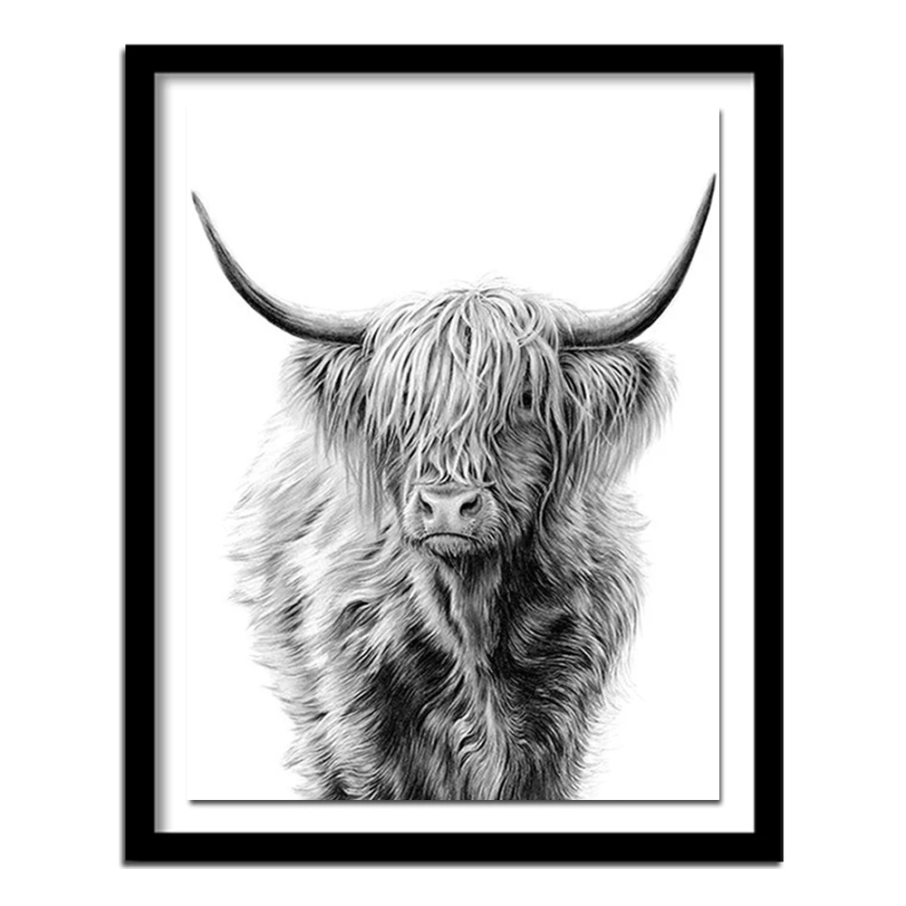 5d DIY расшитый бриллиантами "Черный Белый Хайленд корова" полный квадратный алмаз картина вышивка крестом животное, алмаз, скандинавские картины