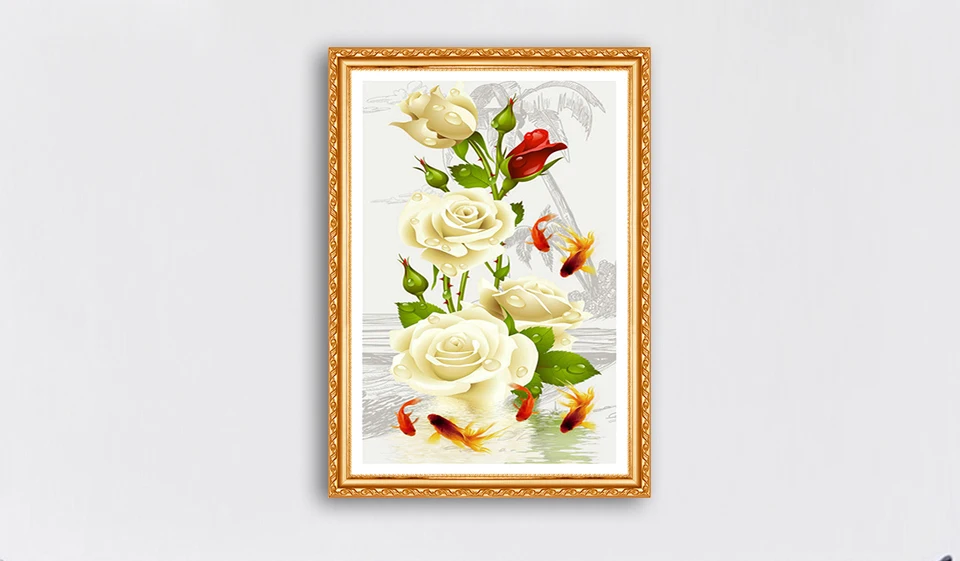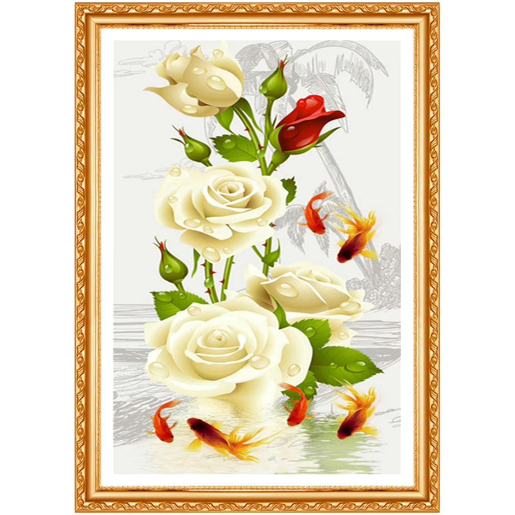 Золотое панно, 5D, diy Алмазная вышивка, полный, квадрат, алмазная живопись, вышивка крестиком, 3D, бриллиант, Needlwork, белая роза