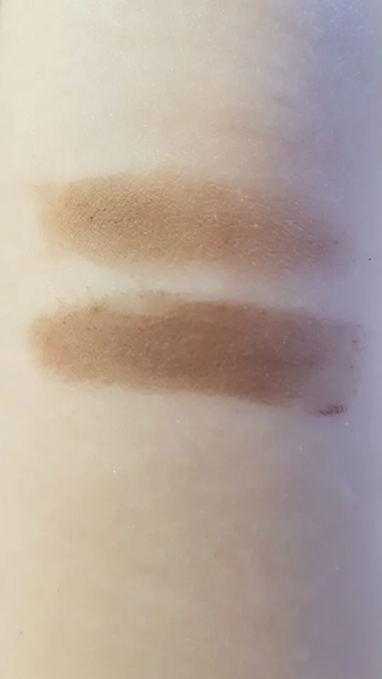 доставка неожиданно быстрая для посылки без трека - четыре недели, забирала всё равно на почте. сами тени немного меньше, чем я ожидала. не рассыпчатые, а как восковые. у кого жирная кожа, думаю, не подойдут - будут размазываться. у меня же кожа суховатая, за целый день не размазала брови. первый цвет слишком светлый, второй хороший, вроде не рыжит и смотрится натурально