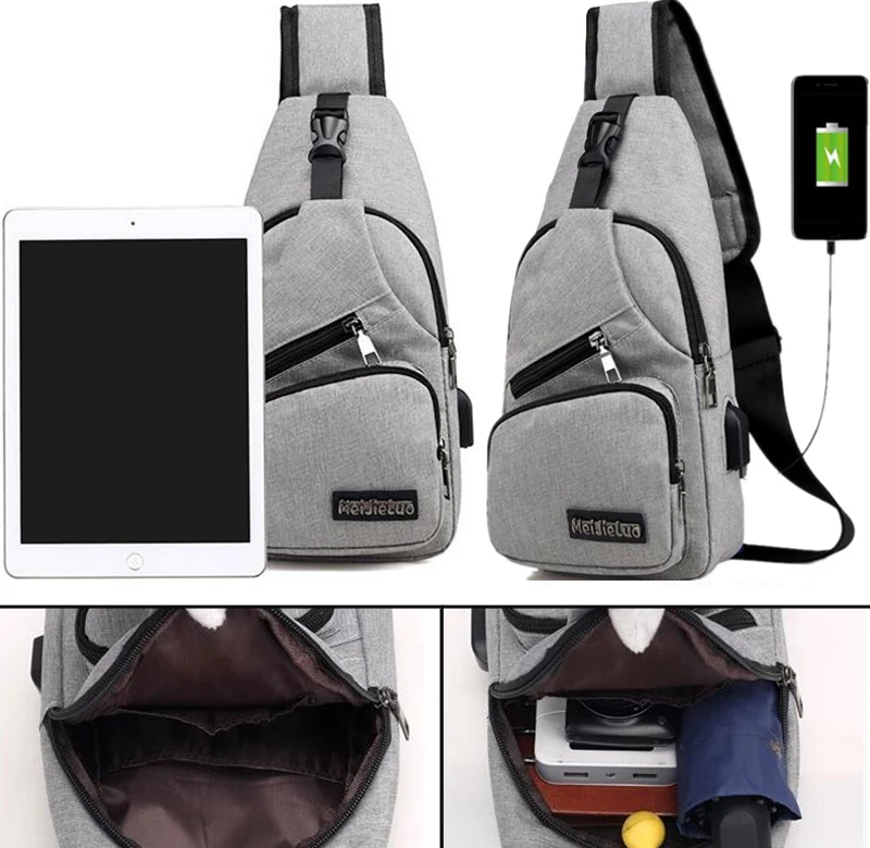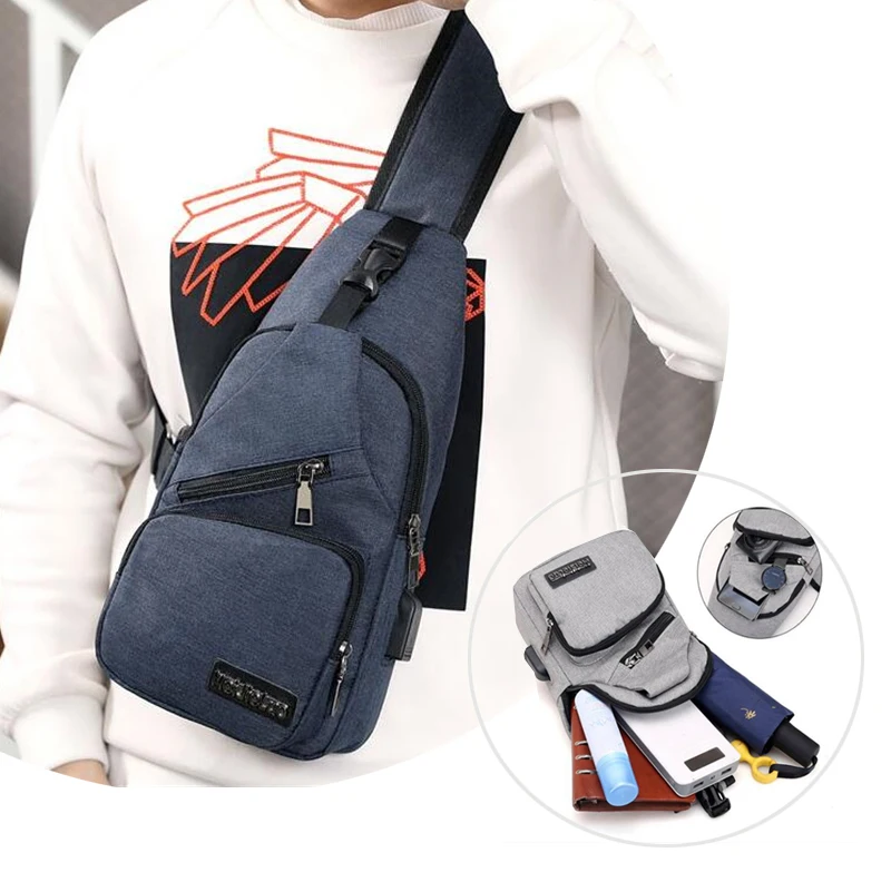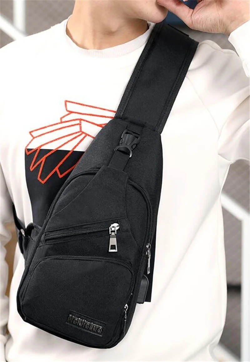 Мужские сумки через плечо с USB-зарядкой, Мужская нагрудная сумка с...