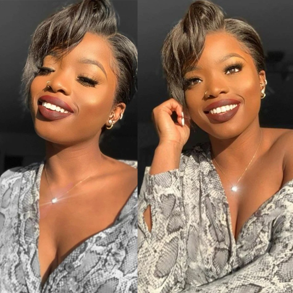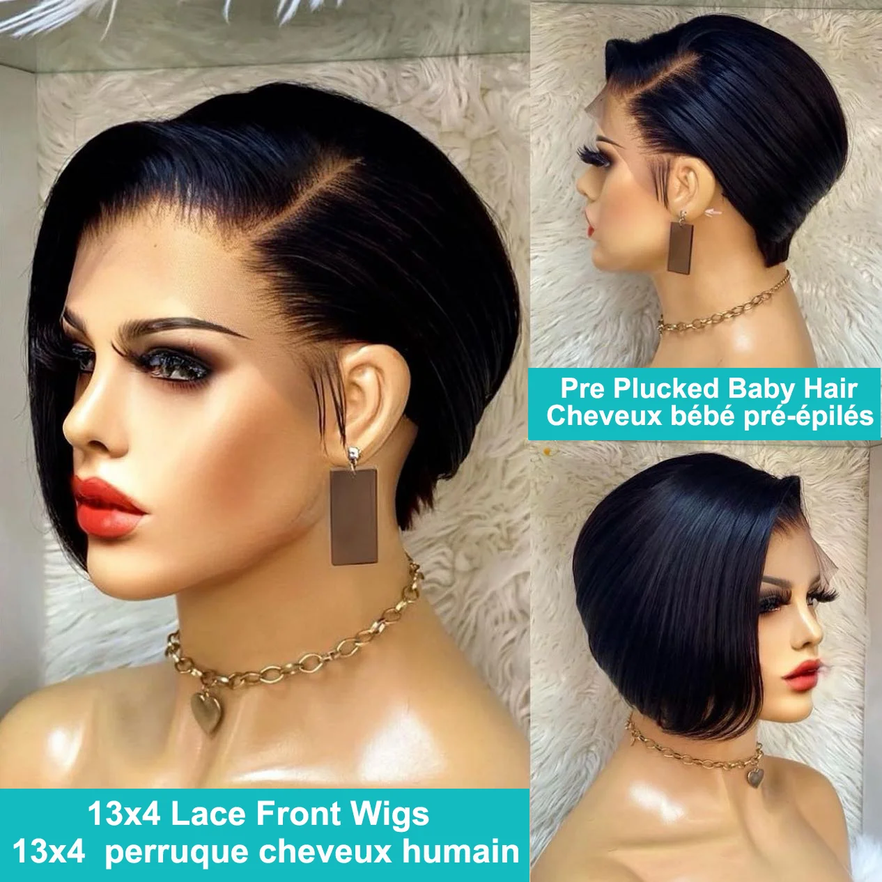 Короткий парик из человеческих волос с коротким вырезом флэкси, парик из бразильских прямых волос с застежкой 13x4, женский Парик С ЗАВЯЗКОЙ СПЕРЕДИ