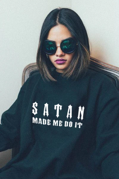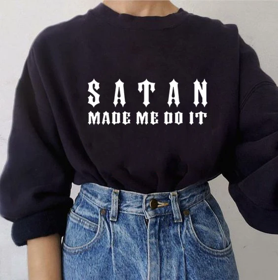 Женский свитшот с длинным рукавом сатана сделала я это, готический черный Модный пуловер с капюшоном в стиле Харадзюку, топы, повседневное Свободное пальто