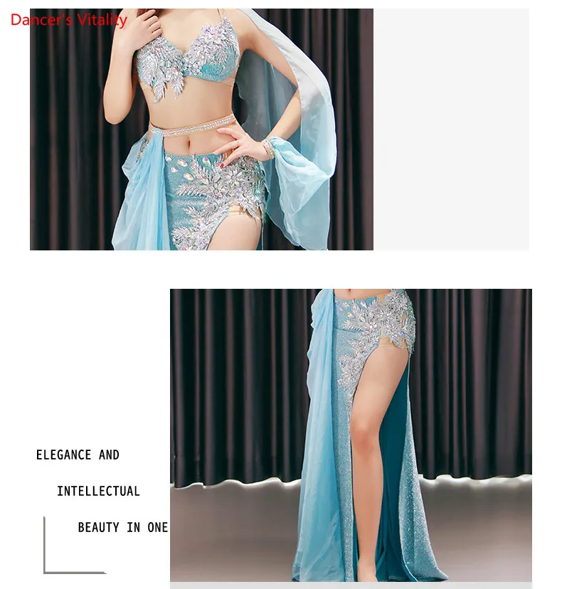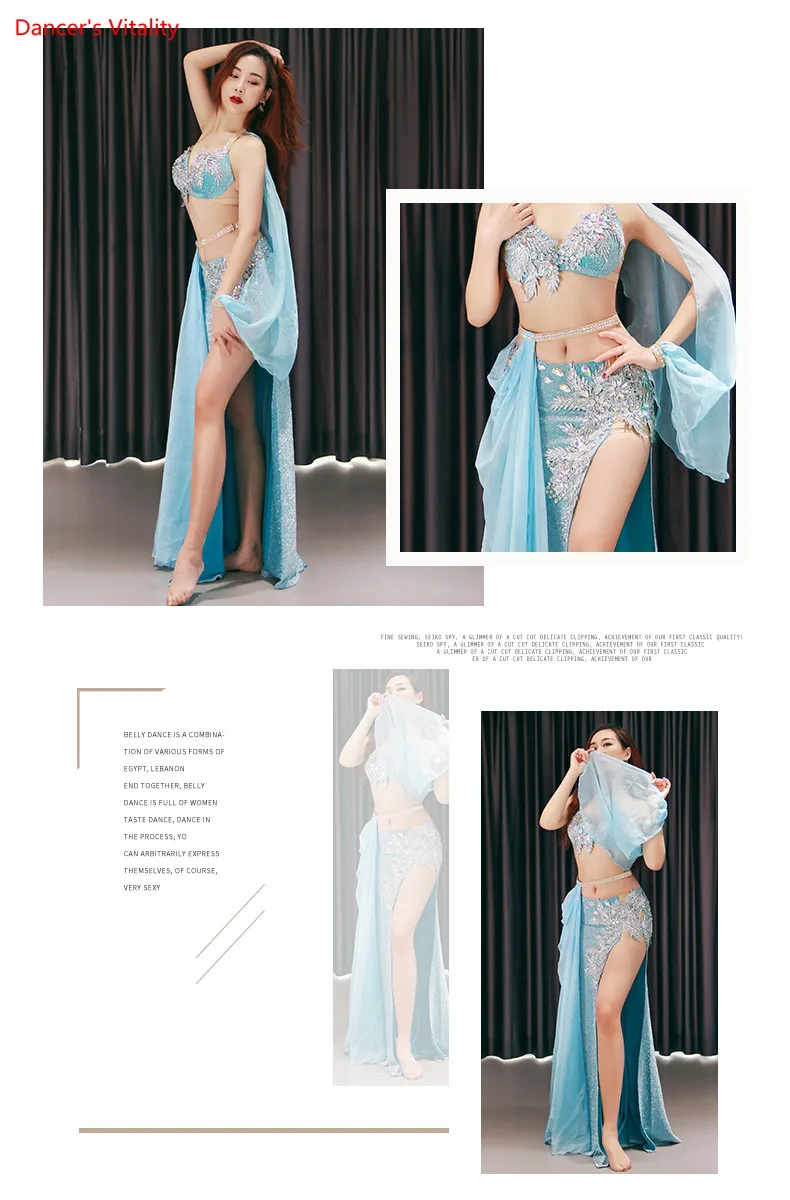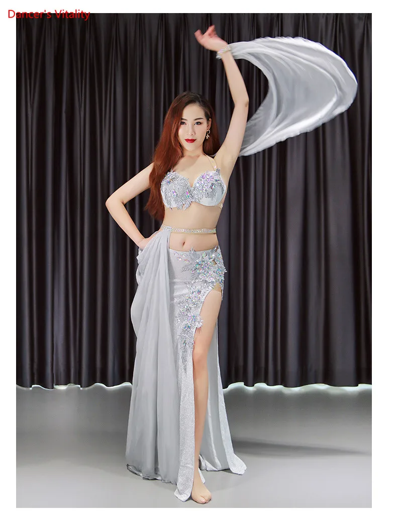 Костюм для танца живота женский, комплект из 3 предметов, бюстгальтер + длинная юбка + пояс