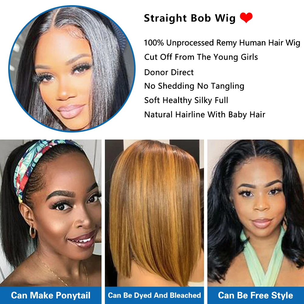 Парик Боб, парики из человеческих волос на сетке спереди, короткие бразильские волосы, парики с выщипанными и отбеленными узлами, парик на сетке, прямой парик для женщин